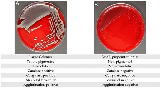 31. Kipp, F.; Kahl, B.C.; Becker, K.; Baron, E.J.; Proctor, R.A.; Peters, G.; von Eiff, C. Evaluation of two chromogenic agar media for recovery and identification of Staphylococcus aureus small-colony variants. J. Clin. Microbiol. 2005, 43, 1956–1959. [Google Scholar] [CrossRef] [PubMed]