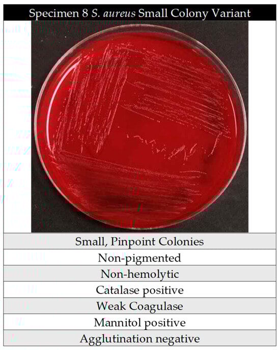 18. Keim, K.C.; George, I.K.; Reynolds, L.; Smith, A.C. The Clinical Significance of Staphylococcus aureus Small Colony Variants. Lab. Med. 2023, 54, 227–234. [Google Scholar] [CrossRef] [PubMed]