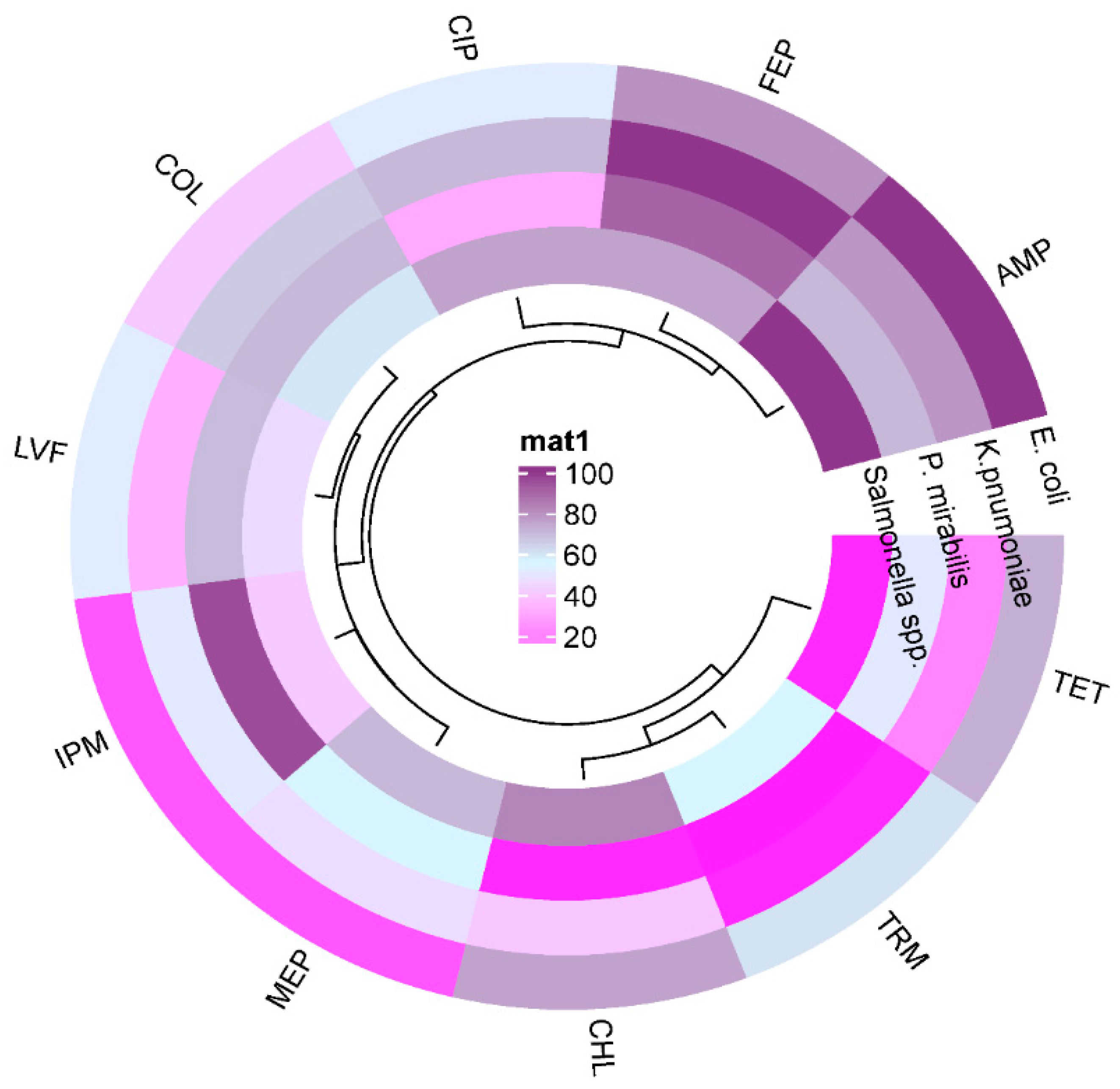3.2. Antimicrobial Susceptibility Pattern of Enterobacterales from Animal-Based Foods