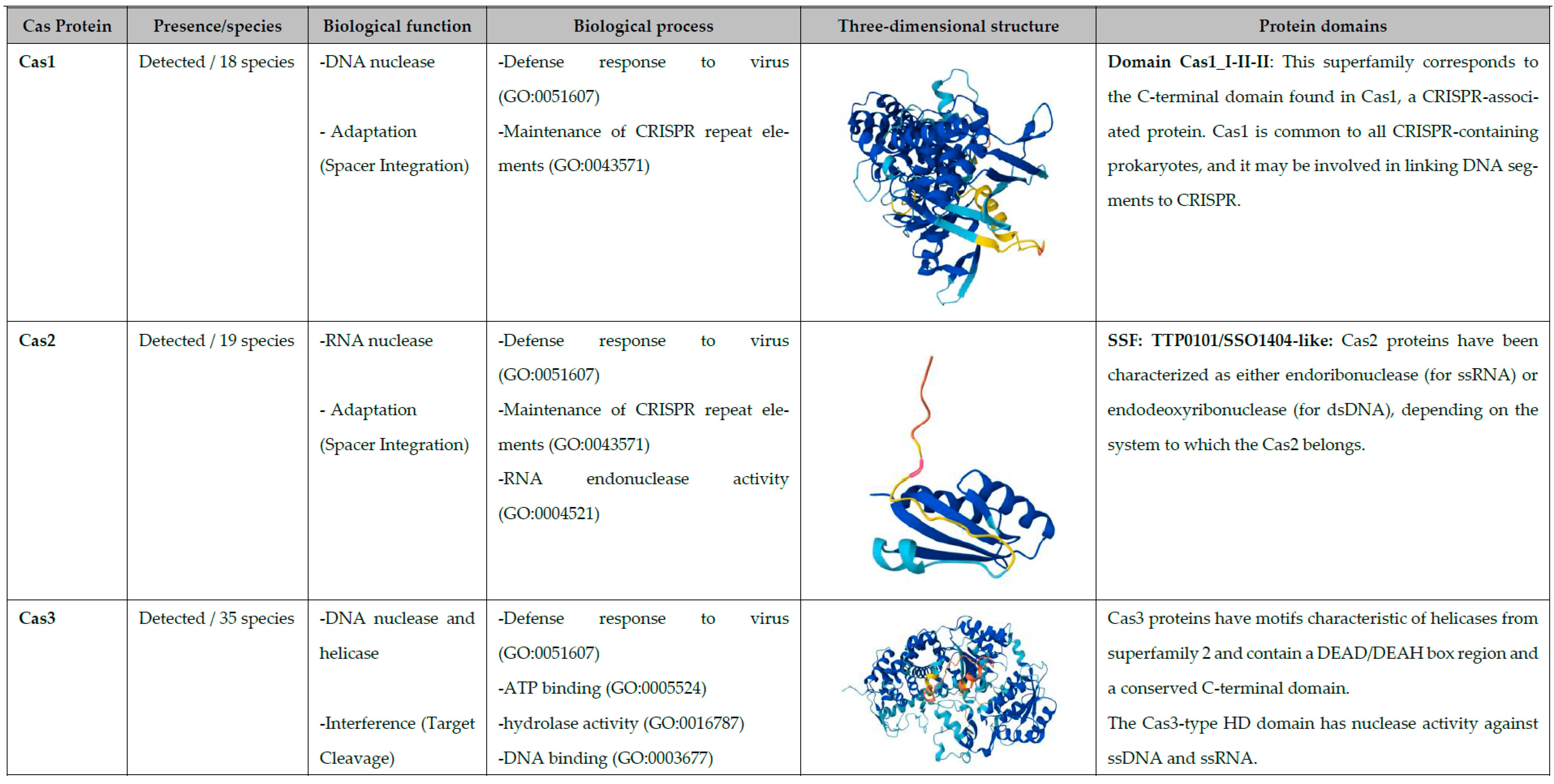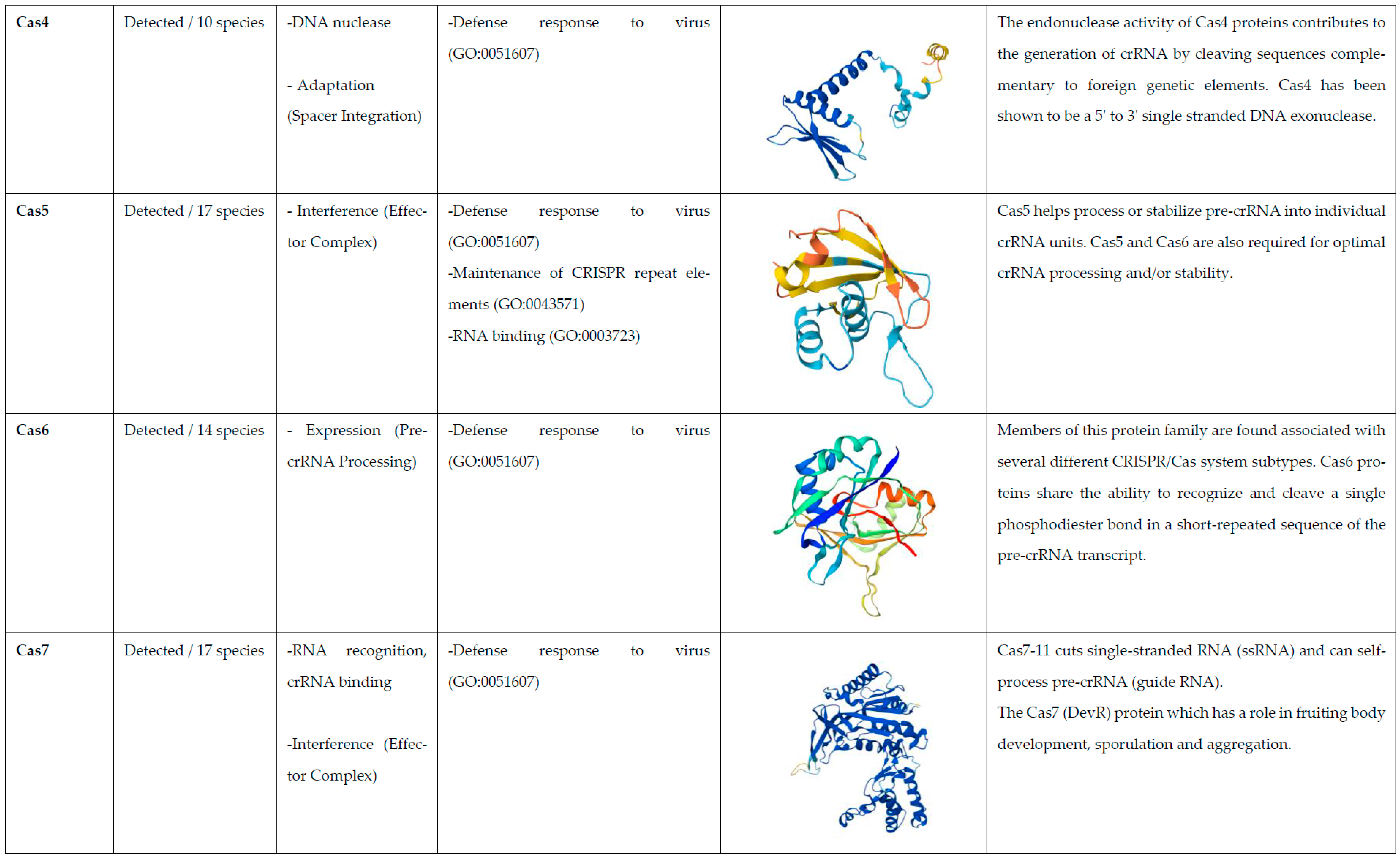 | Species | Adaptation Spacer Integration | Expression Pre-crRNA Processing | Interference | Taxonomic Classification | |