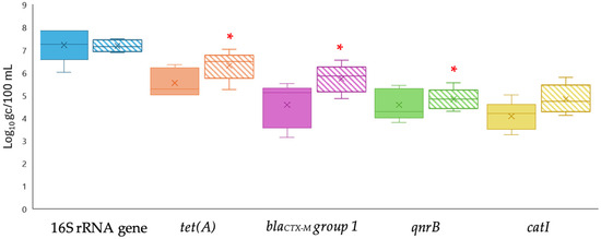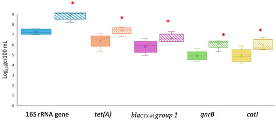 - Calero-Cáceres, W.; Muniesa, M. Persistence of naturally occurring antibiotic resistance genes in the bacteria and bacteriophage fractions of wastewater. Water Res. 2016, 95, 11–18. [Google Scholar] [CrossRef]