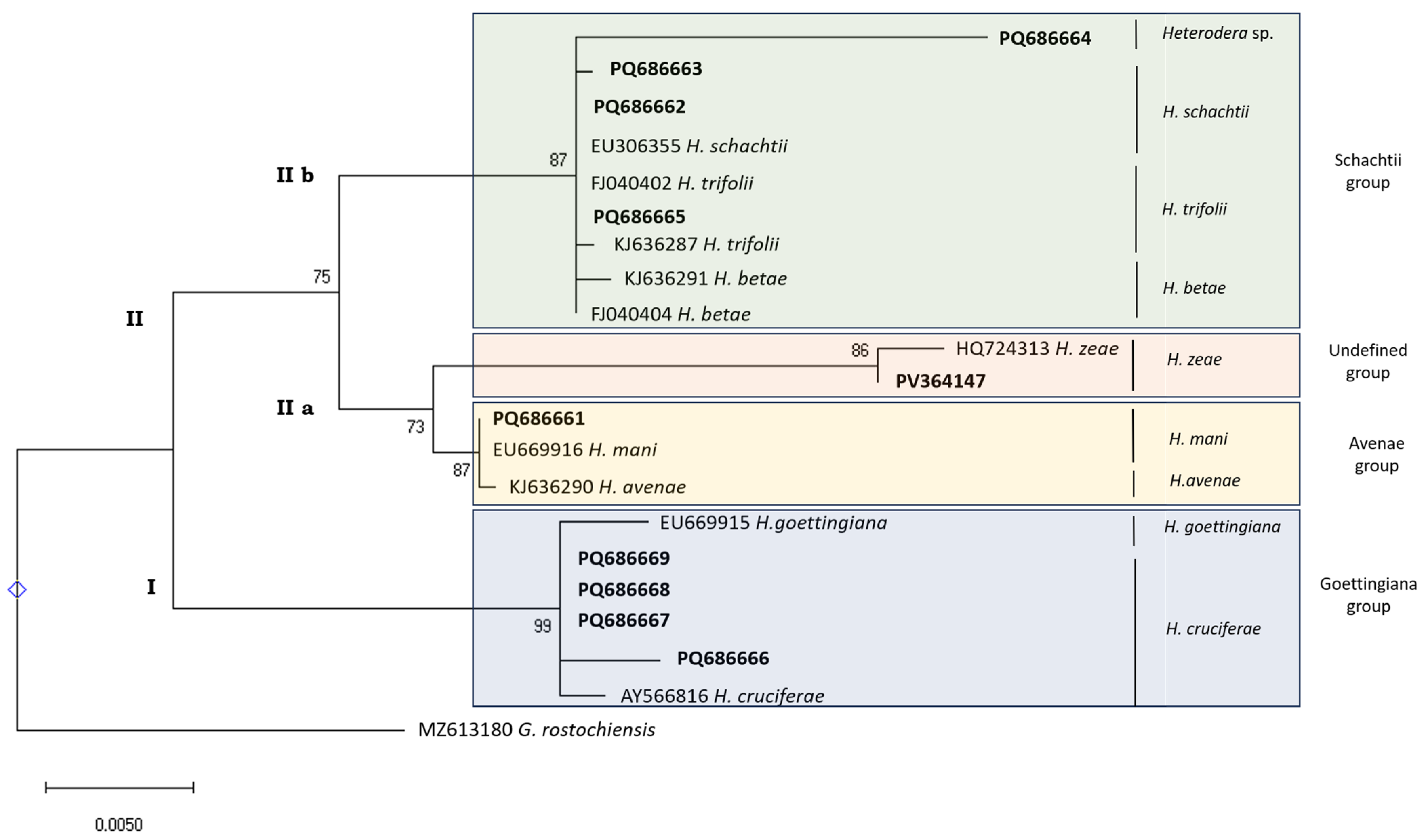 2.5. Heterodera spp. Phylogenetic Analysis