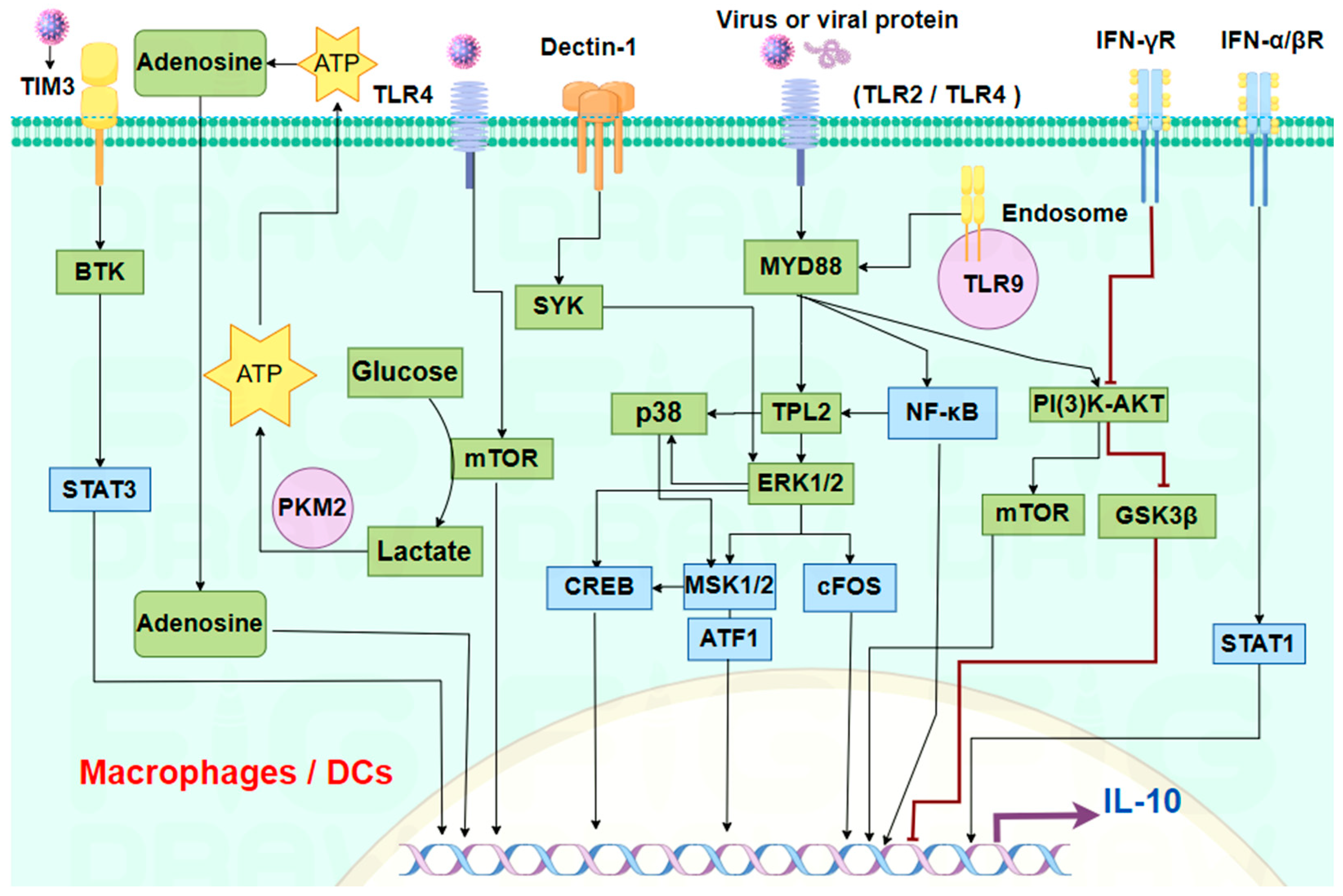 - Antoniv, T.T.; Ivashkiv, L.B. Interleukin-10-induced gene expression and suppressive function are selectively modulated by the PI3K-Akt-GSK3 pathway. Immunology 2011, 132, 567–577. [Google Scholar] [CrossRef]