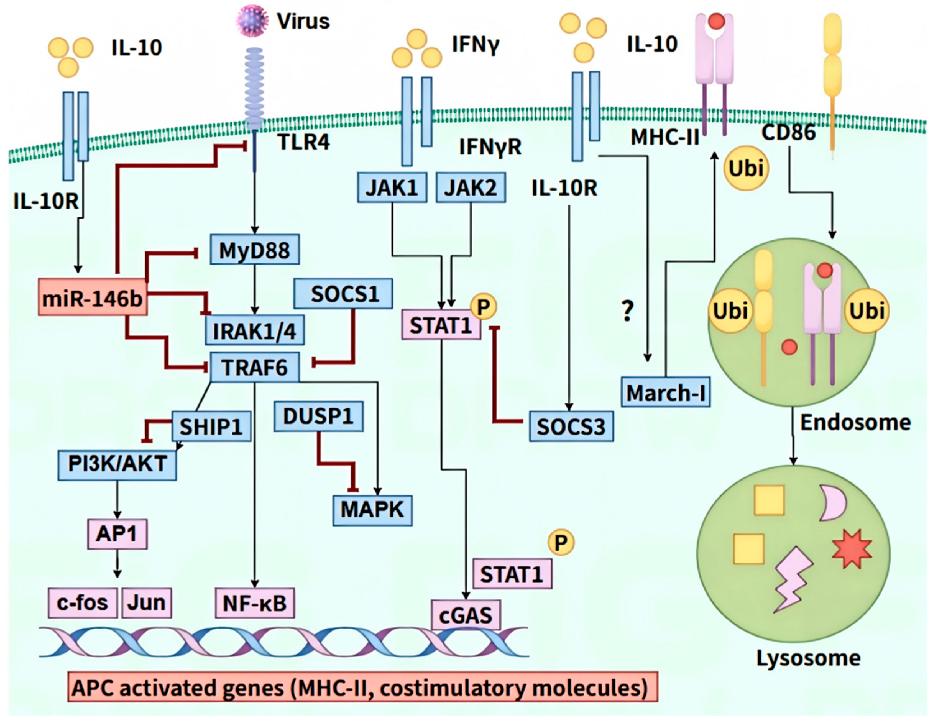 - Chan, L.L.Y.; Cheung, B.K.W.; Li, J.C.B.; Lau, A.S.Y. A role for STAT3 and cathepsin S in IL-10 down-regulation of IFN-γ-induced MHC class II molecule on primary human blood macrophages. J. Leukoc. Biol. 2010, 88, 303–311. [Google Scholar] [CrossRef]