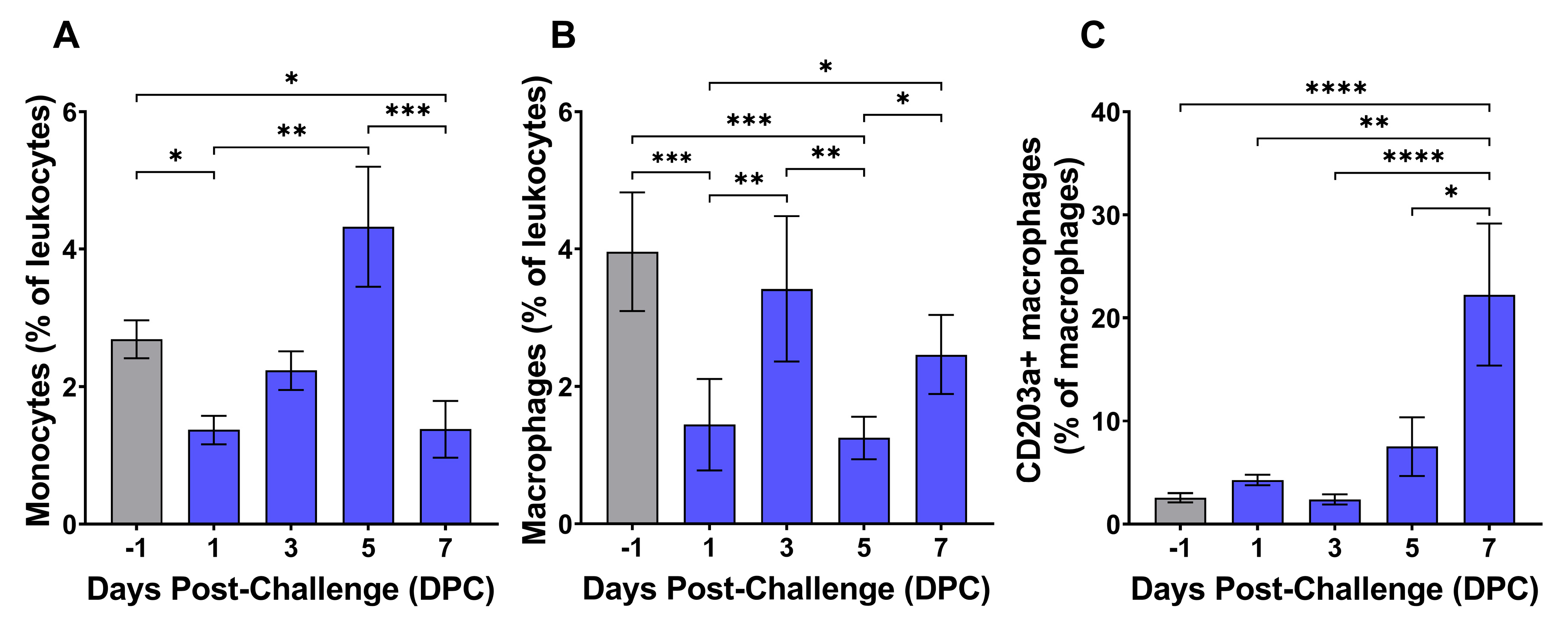 APA StyleMadden, D. W., Artiaga, B. L., Trujillo, J. D., Assato, P., McDowell, C. D., Fitz, I., Kwon, T., Cool, K., Li, Y., Gaudreault, N. N., Morozov, I., & Richt, J. A. (2025). Temporal Dynamics of Cytokine, Leukocyte, and Whole Blood Transcriptome Profiles of Pigs Infected with African Swine Fever Virus. Pathogens, 14(10), 992. https://doi.org/10.3390/pathogens14100992