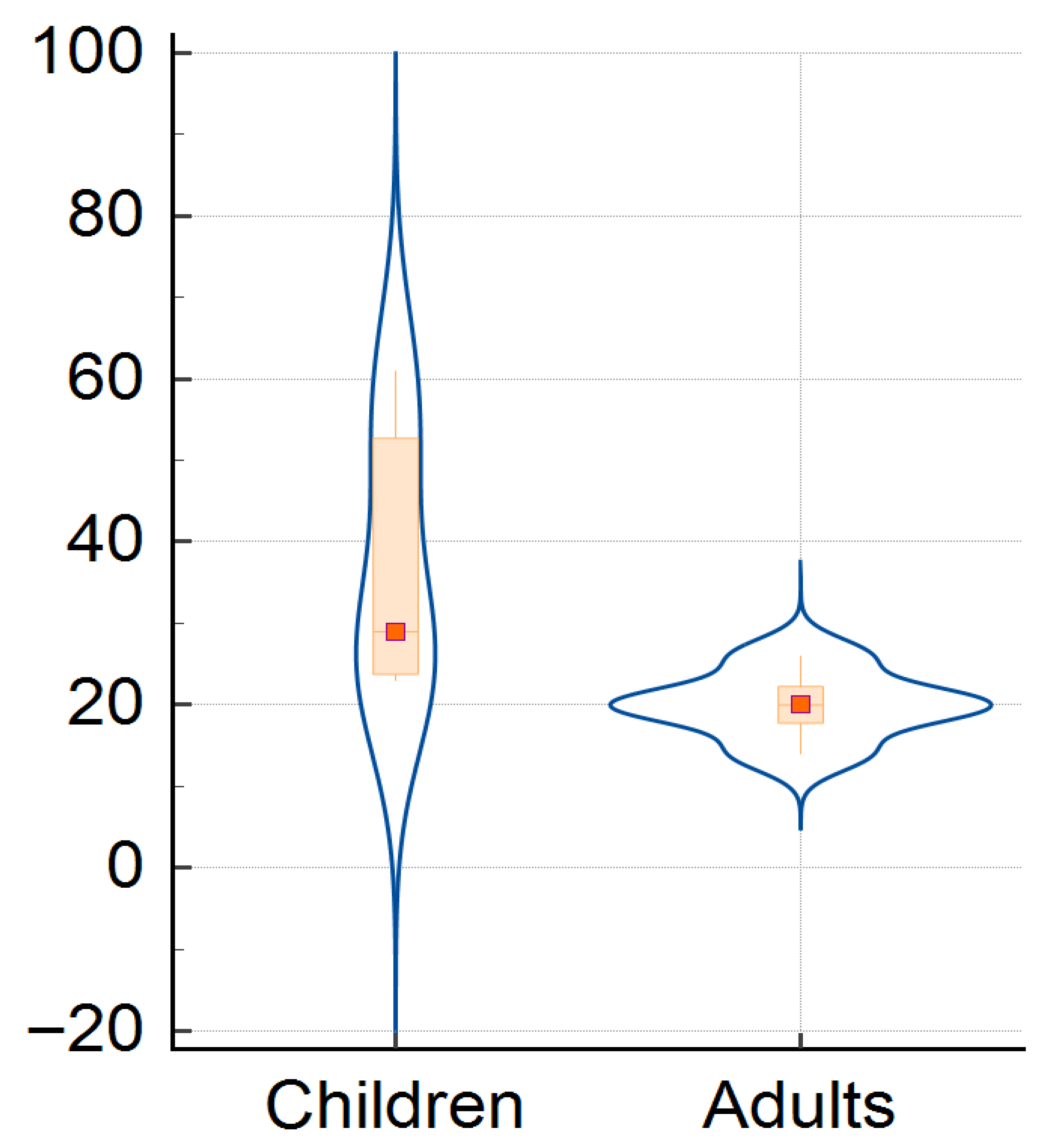 At the same time, the high number of young patients in the present study had a great influence on mean age, of 14 years, for the whole studied group, and it was consistent with the observed median age of 1 year in children and 34 years in adults.