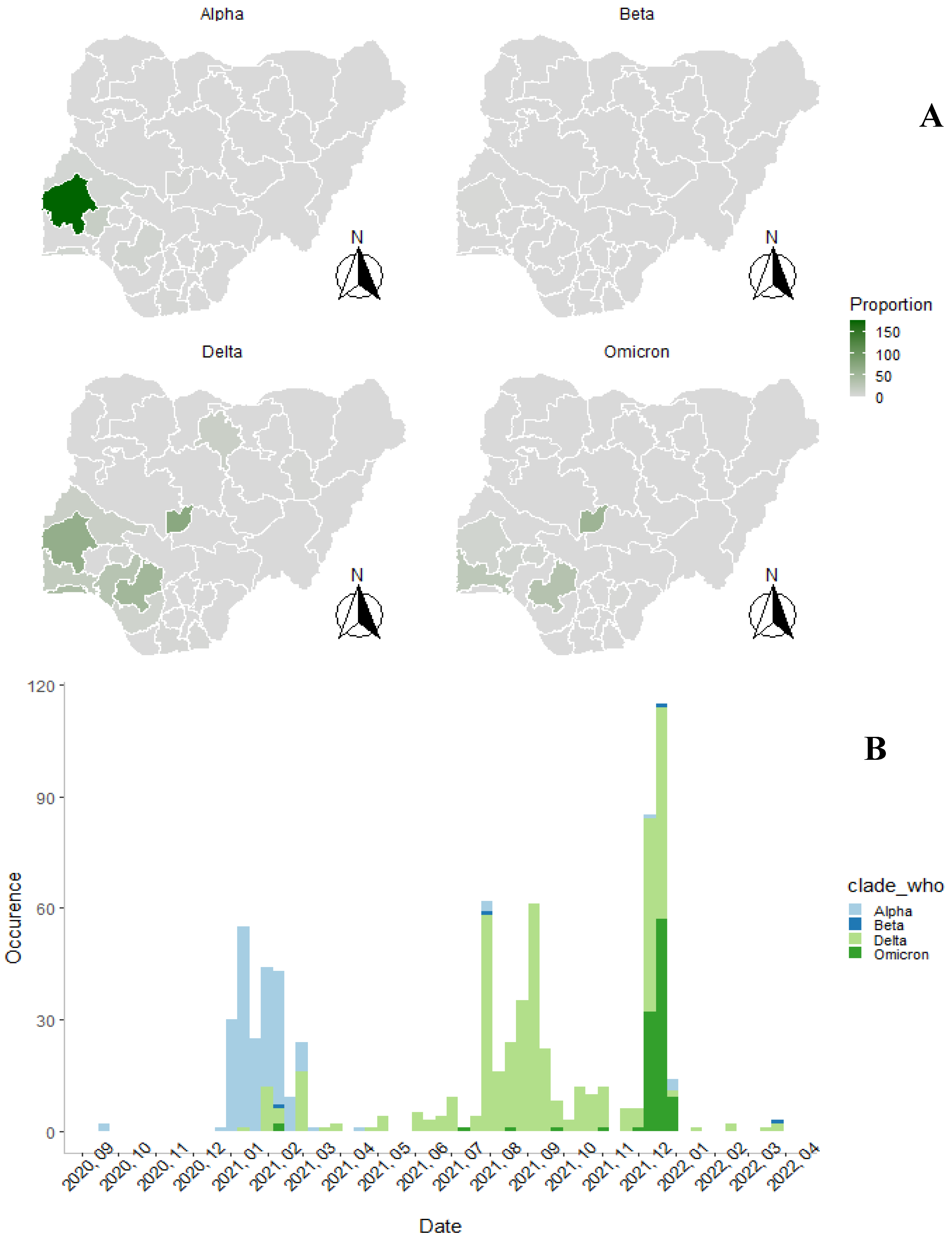 - Ozer, E.A.; Simons, L.M.; Adewumi, O.M.; Fowotade, A.A.; Omoruyi, E.C.; Adeniji, J.A.; Olayinka, O.A.; Dean, T.J.; Zayas, J.; Bhimalli, P.; et al. Multiple expansions of globally uncommon SARS-CoV-2 lineages in Nigeria. Nat. Commun. 2022, 13, 688. [Google Scholar] [CrossRef]