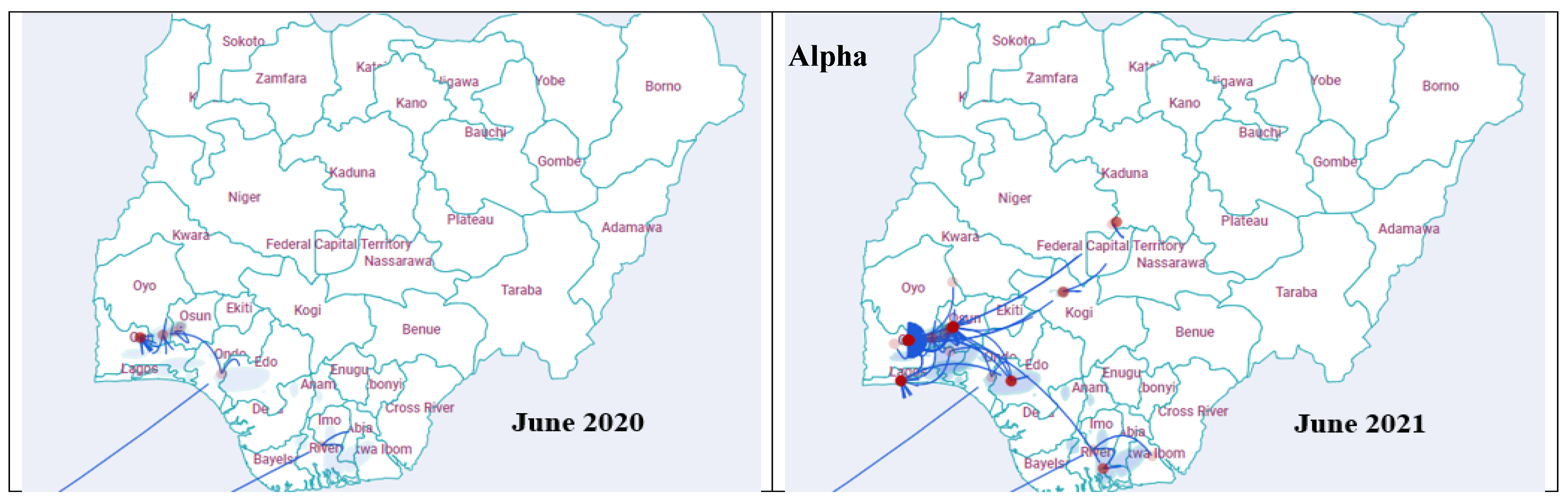 | Alpha | 2.66 × 10−4 | 1.67 × 10−4 to 3.47 × 10−4 | July 2020 | Nov. 2018–Sept. 2020 |