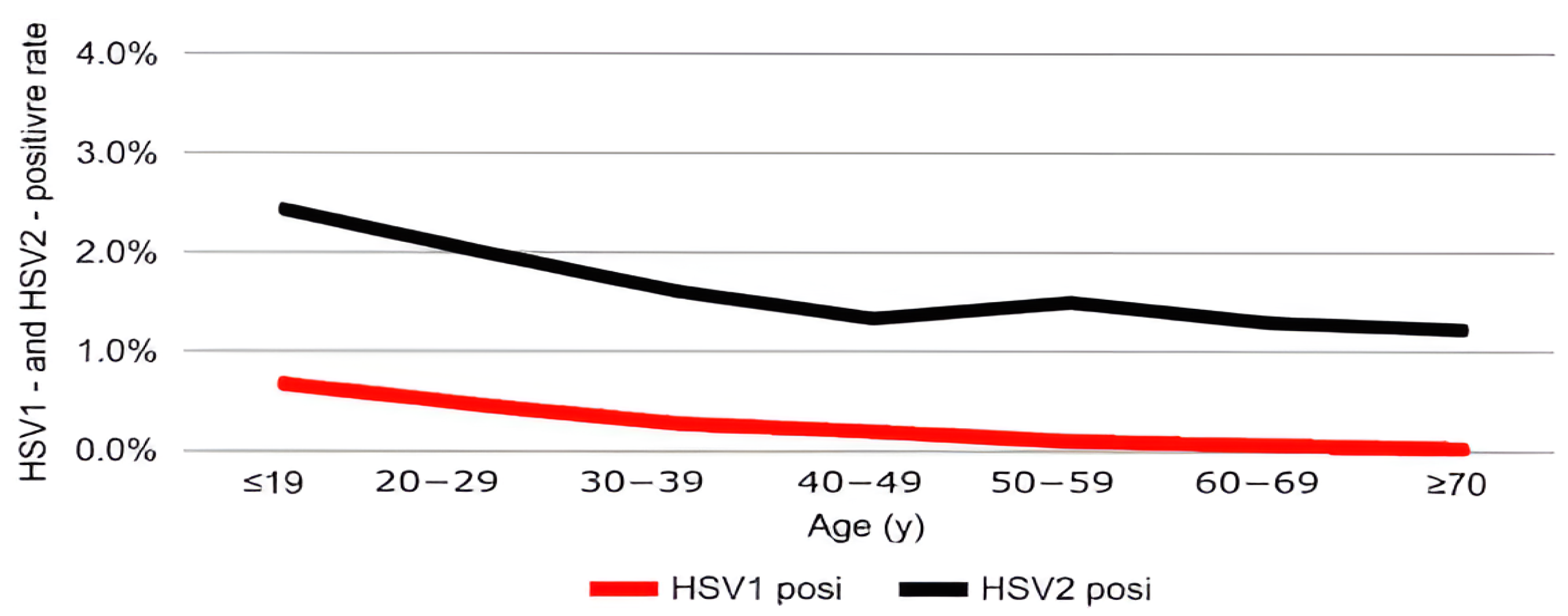 | HSV-2 | Logistic regression (per 1-year increase) | 0.86 | 0.83–0.88 | < 0.001 |