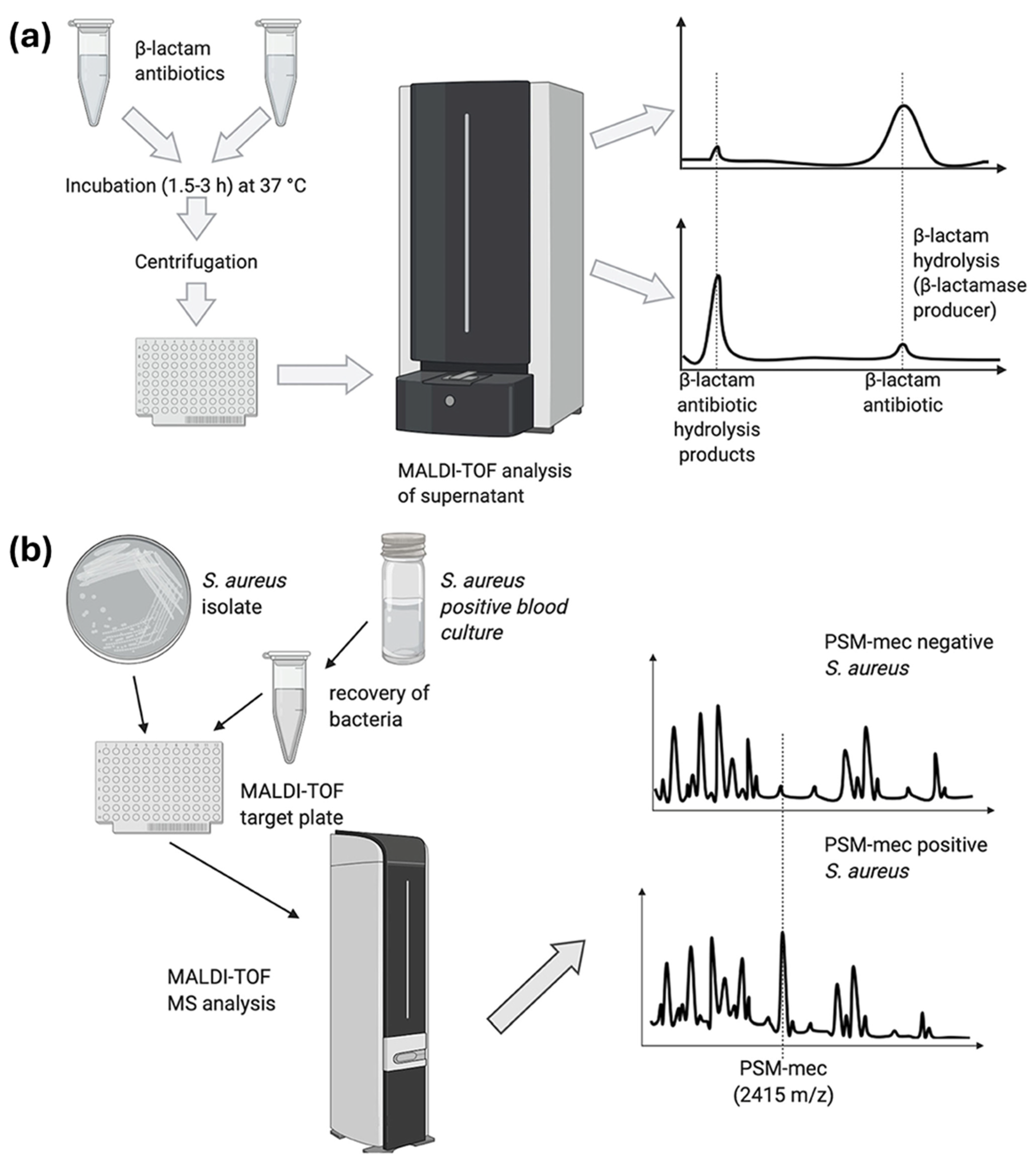 - Charretier, Y.; Schrenzel, J. Mass spectrometry methods for predicting antibiotic resistance. Proteom. Clin. Appl. 2016, 10, 964–981. [Google Scholar] [CrossRef]