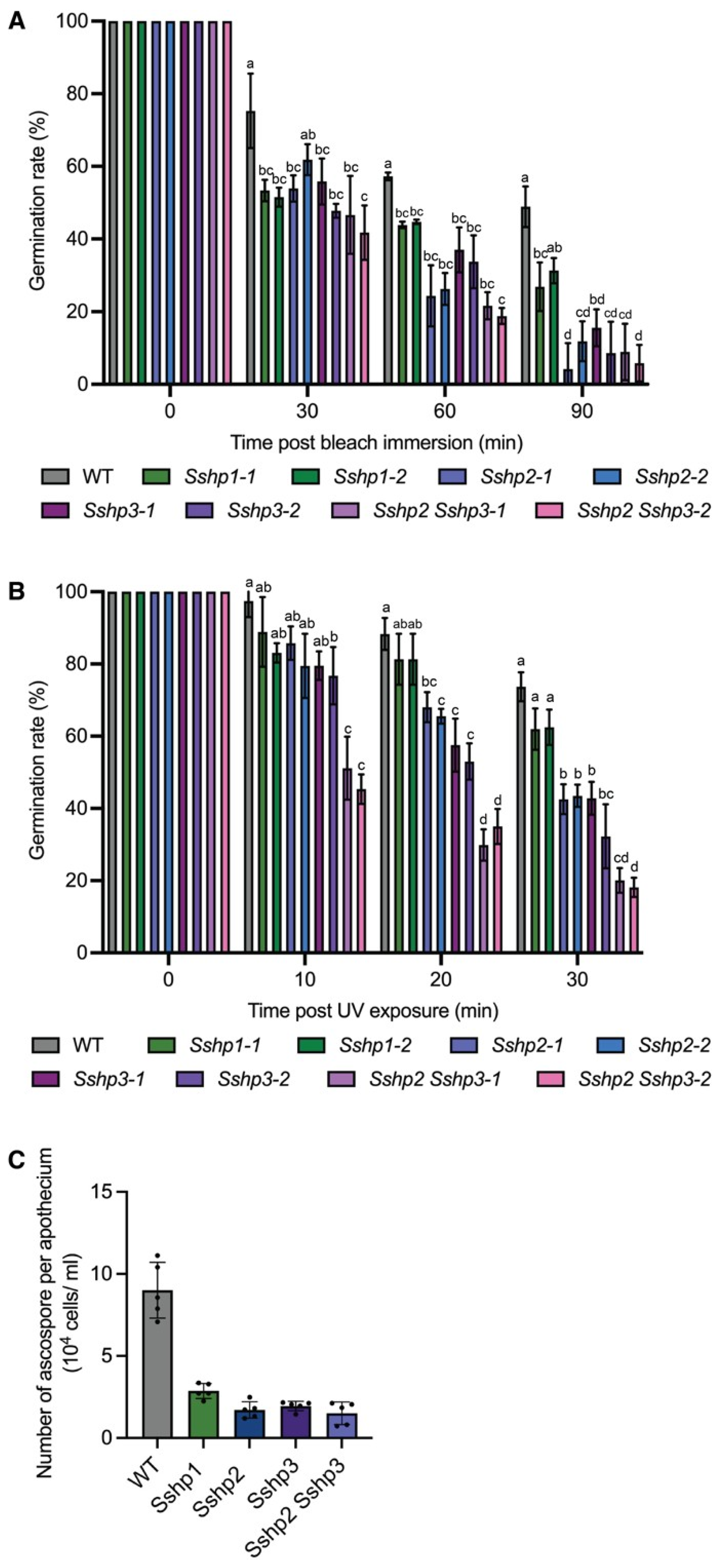 SsHP3 are essential for proper compound appressoria function and virulence. Double mutant