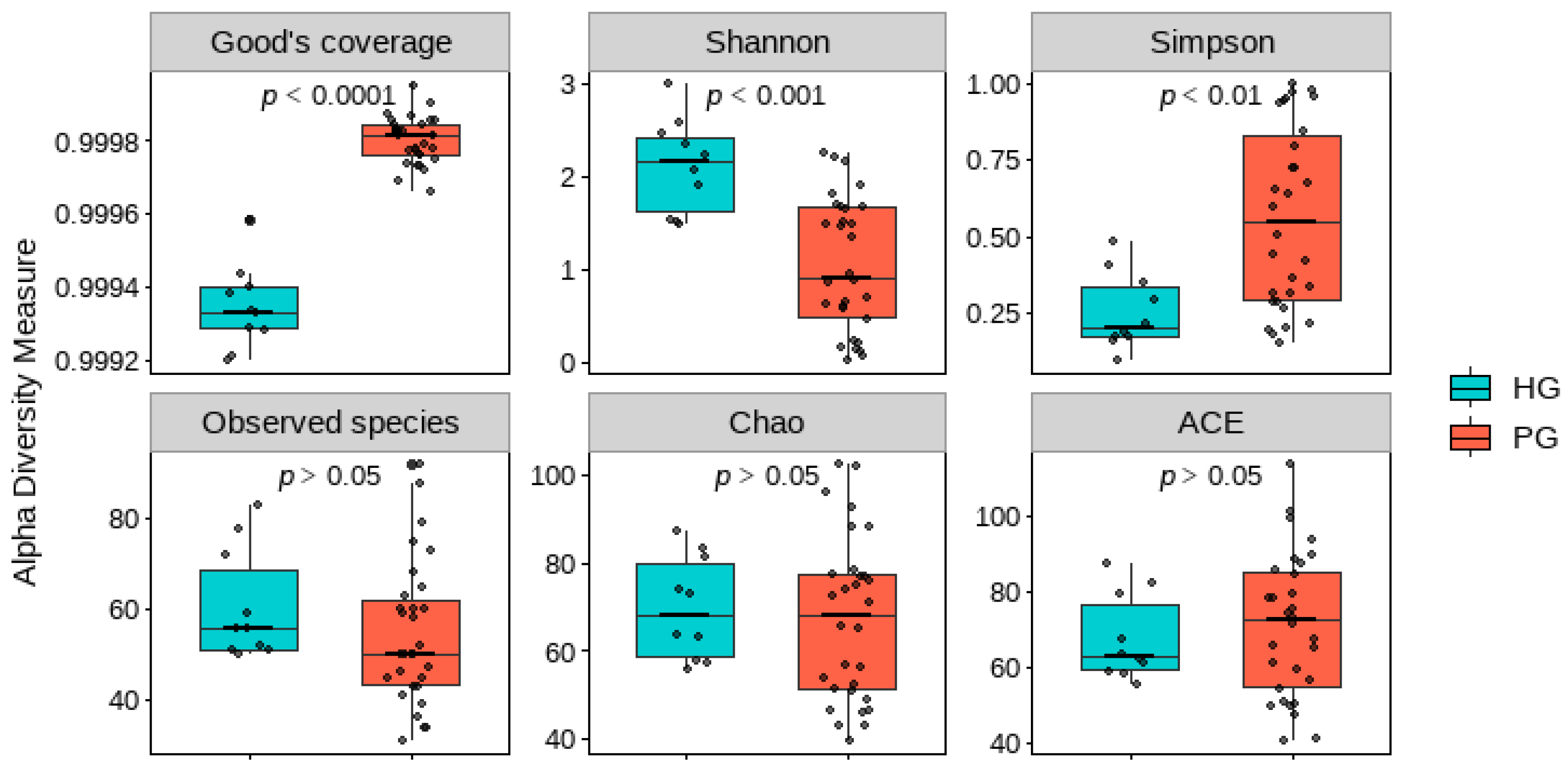 - CD Genomics. The Use and Types of Alpha-Diversity Metrics in Microbial NGS. Available online: https://www.cd-genomics.com/microbioseq/the-use-and-types-of-alpha-diversity-metrics-in-microbial-ngs.html (accessed on 19 July 2025).
