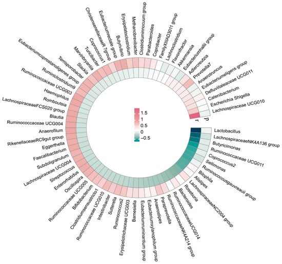 Circular heat map of genetic correlations between gut microbes and ASD.