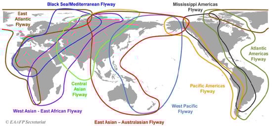 Largest flyways of migratory birds, according to the EAAFP Secretariat [].