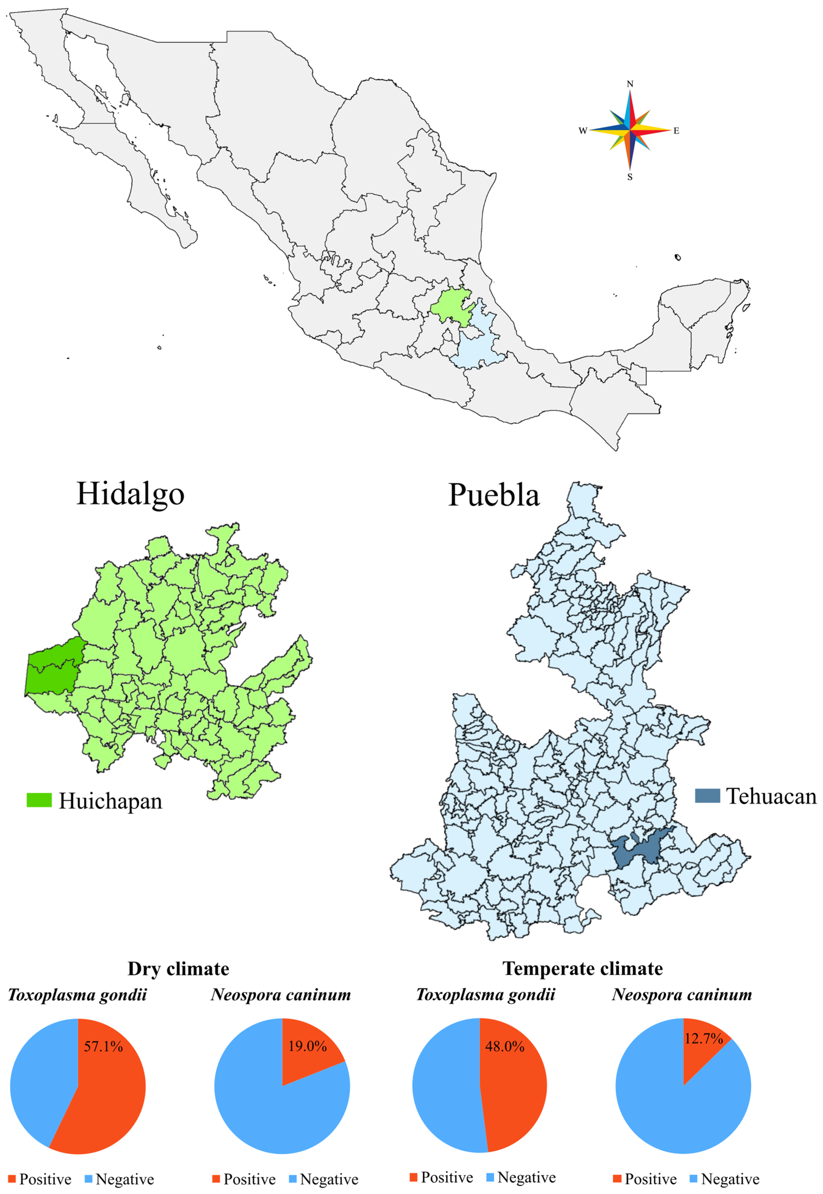 - Alcalá-Gómez, J.; Medina-Esparza, L.; Quezada-Tristán, T.; Alcalá-Gómez, G. Impact of environmental factors on Neospora caninum and Toxoplasma gondii infection in breeding ewes from western Mexico. Int. J. Biometeorol. 2025, 69, 441–448. [Google Scholar] [CrossRef]