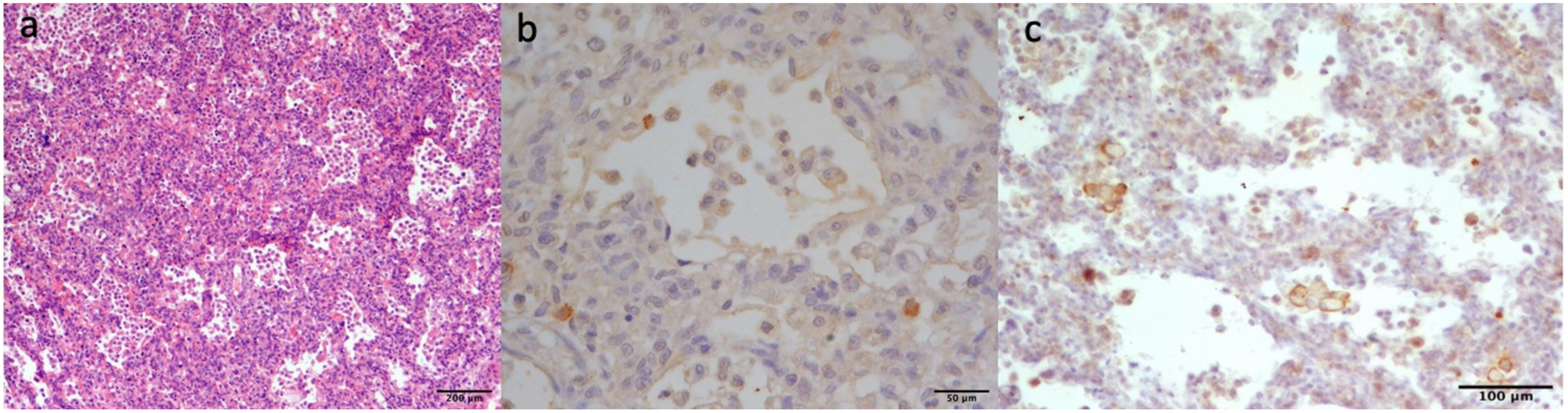 - Monné Rodriguez, J.M.; Soare, T.; Malbon, A.; Blundell, R.; Papoula-Pereira, R.; Leeming, G.; Köhler, K.; Kipar, A. Alveolar macrophages are the main target cells in feline calicivirus-associated pneumonia. Vet. J. 2014, 201, 156–165. [Google Scholar] [CrossRef]