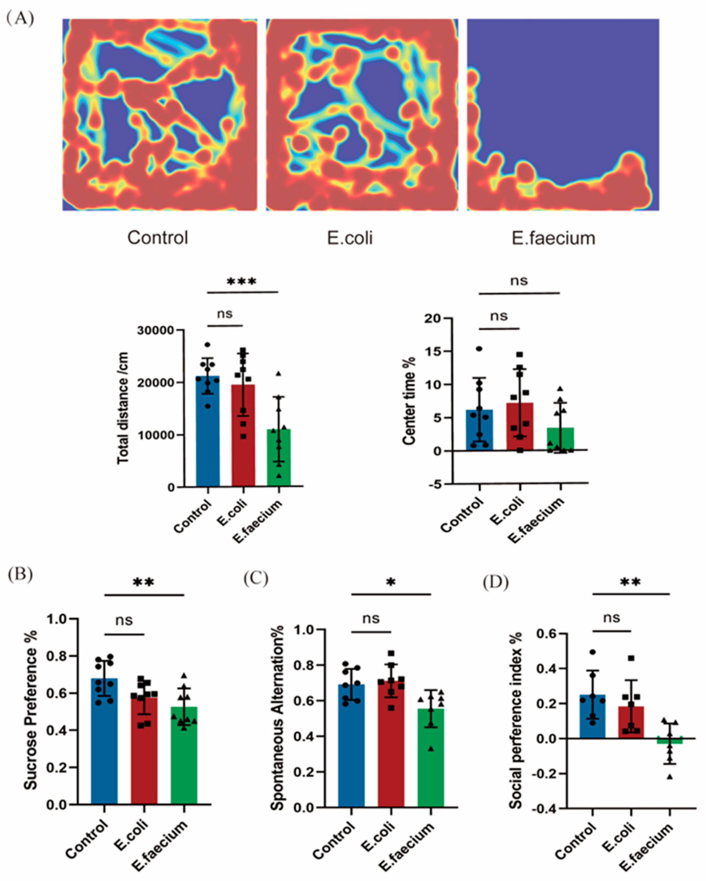 3.3. Behavioral Alterations Induced by E. faecium Administration