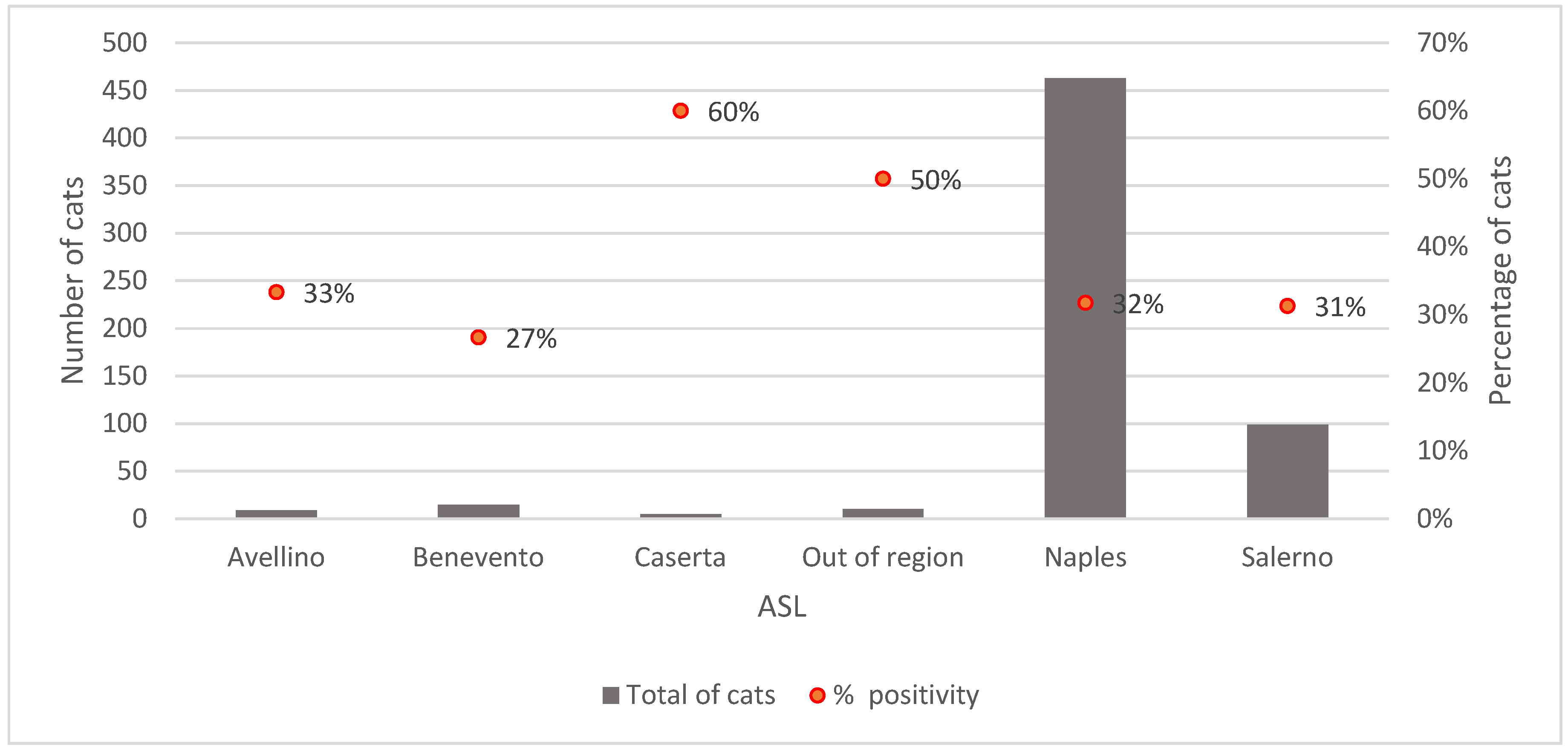 APA StyleFoglia Manzillo, V., Balestrino, I., Oliva, G., Brunetti, R., Cavallo, S., D’Ambrosio, R., Pellicanò, R., Spadari, L., Barca, L., Bruno, F., Montella, M. O., Maurelli, M. P., Florindo, N., Gizzarelli, M., De Santi, M., & Baldi, L. (2025). High Seroprevalence of Feline Leishmaniosis (FeL) in Campania (Italy) Region: Current Epidemiological Scenario. Pathogens, 14(12), 1194. https://doi.org/10.3390/pathogens14121194