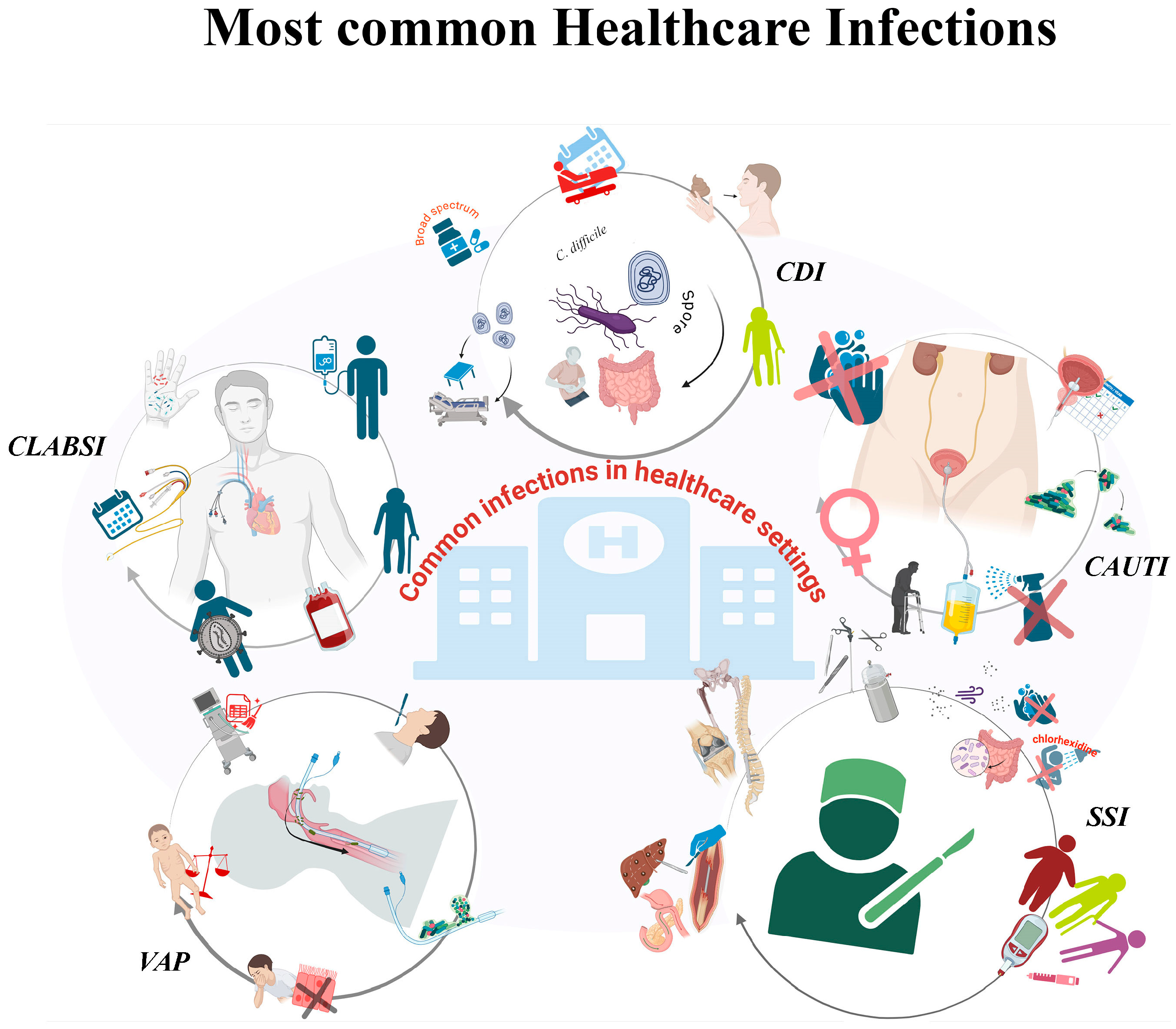 | Healthcare-Associated Infections | Pneumonia, surgical site, urinary, gastro-intestinal and bloodstream infections. | Longer hospital stays, disability, drug resistance and cost. |