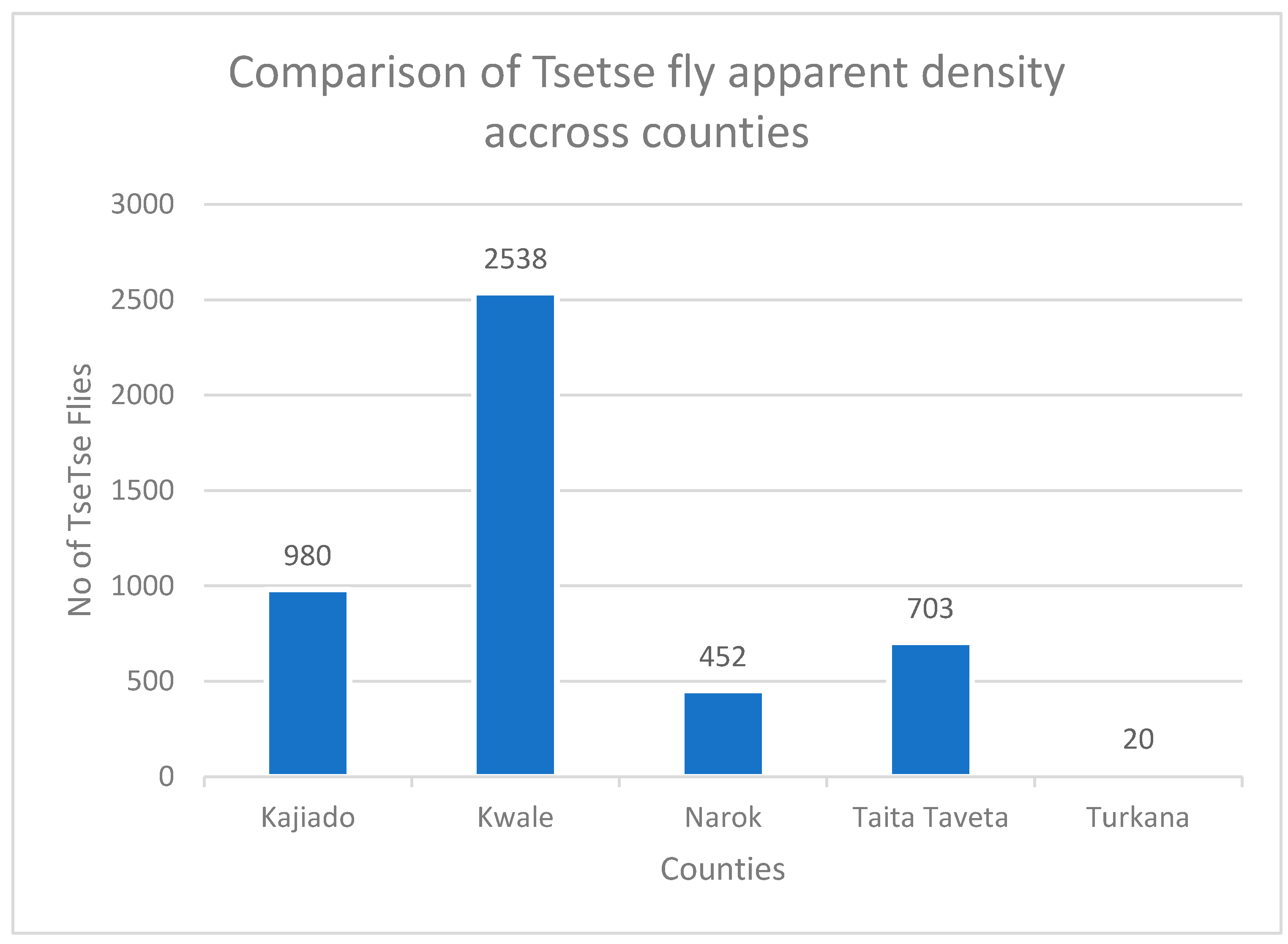 Figure 2. Graph showing comparison of tsetse fly apparent density across the five different counties.