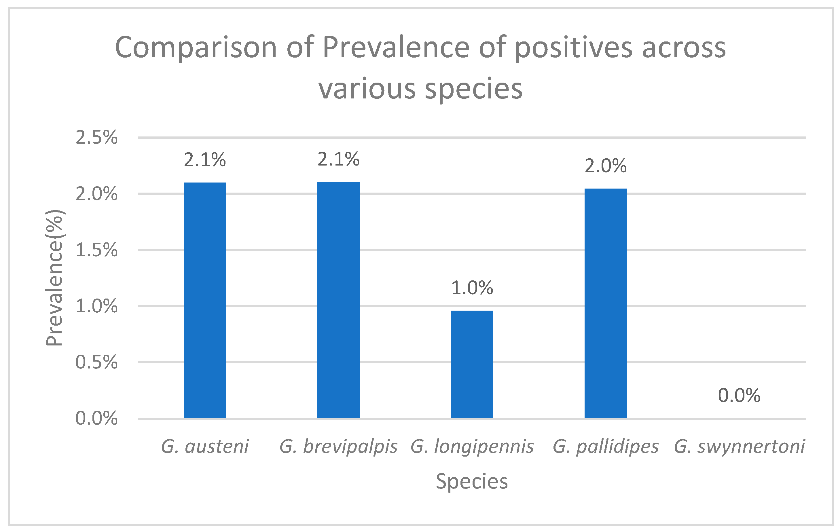 Figure 6. Graph showing comparison of trypanosome prevalence in tsetse flies across different tsetse species.