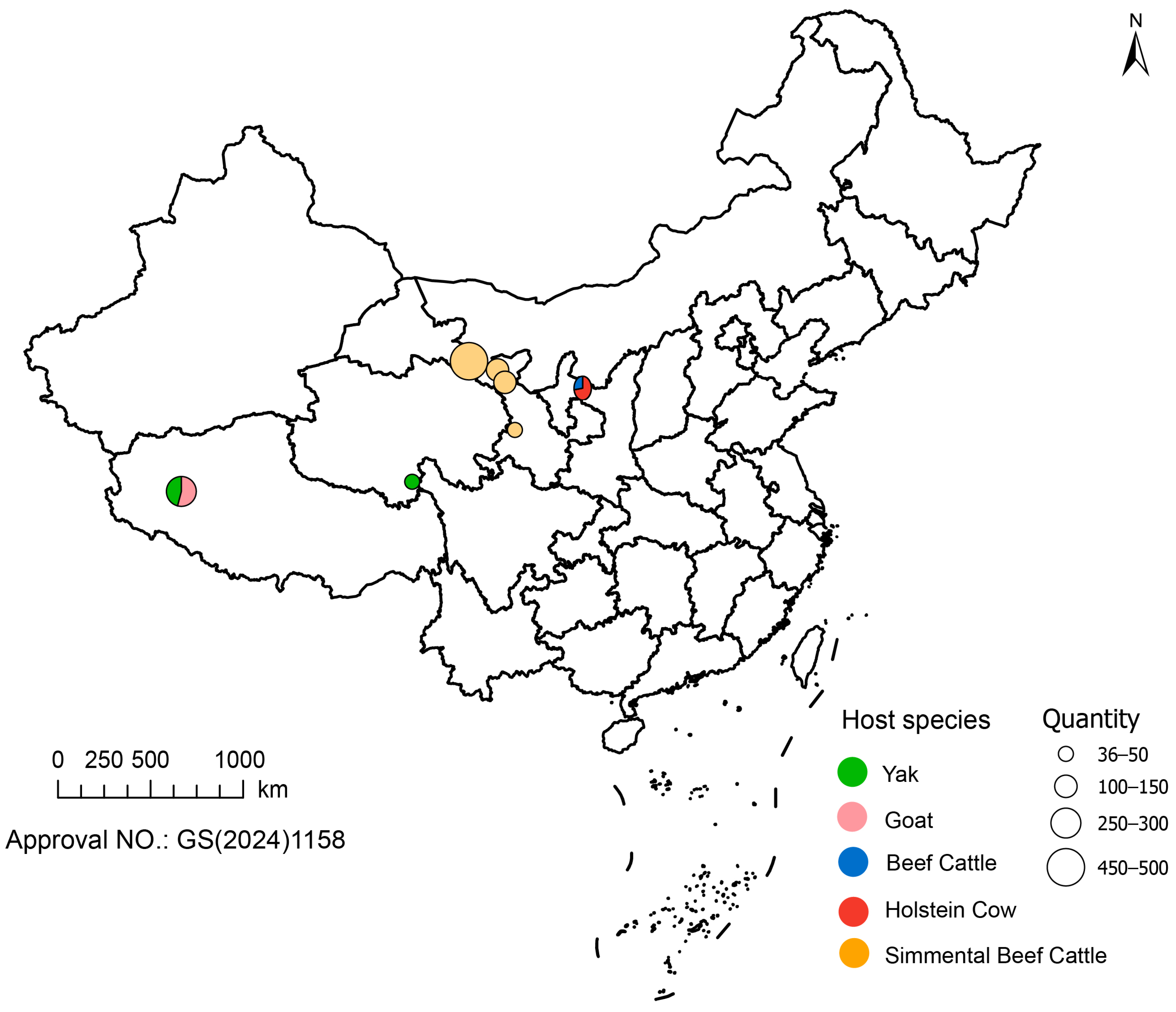 | Gansu Province | Zhangye | Simmental Beef Cattle | 16.34% (75/459) |