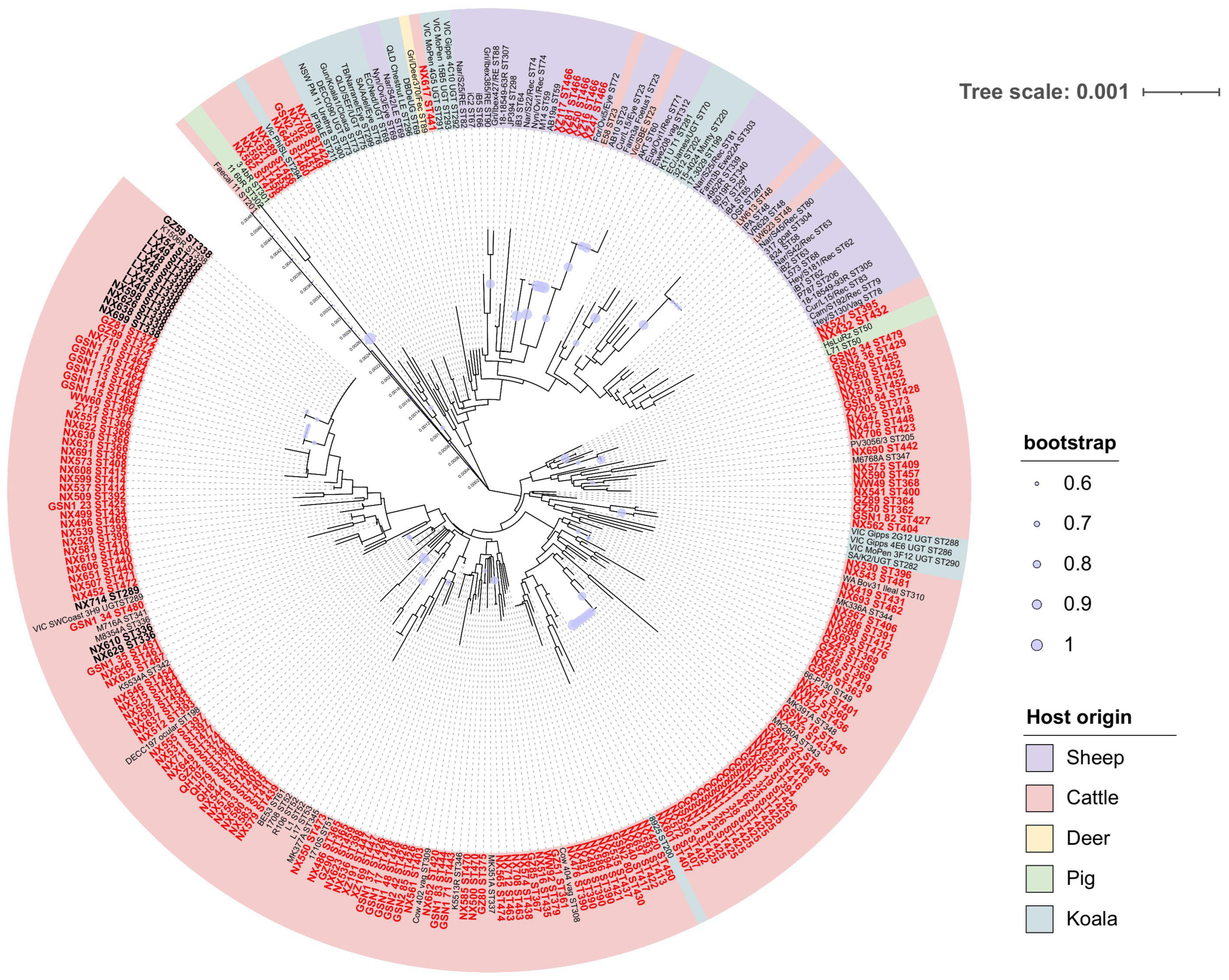 3.3. C. pecorum MLST Analyses
