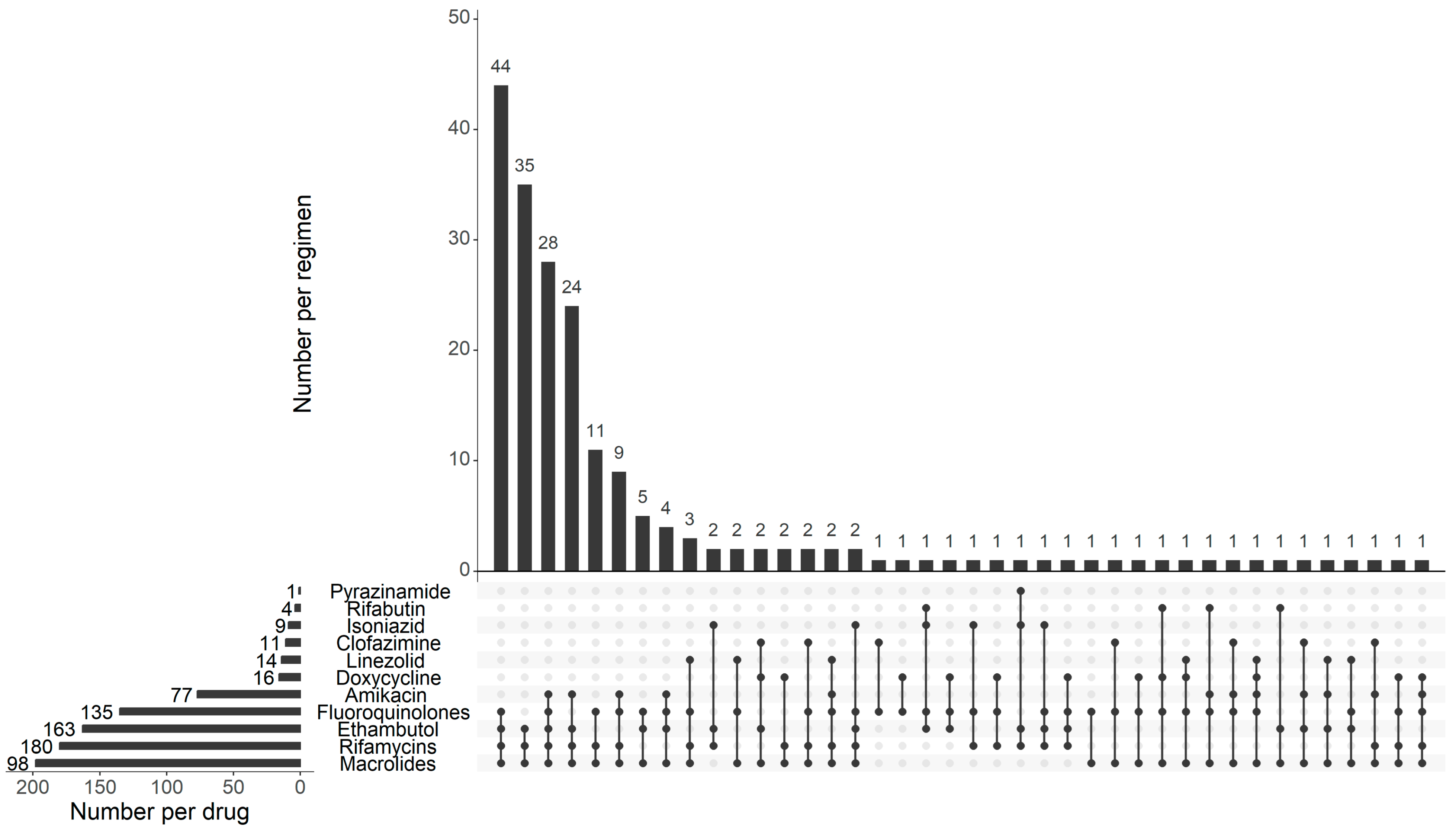 - Nasiri, M.J.; Ebrahimi, G.; Arefzadeh, S.; Zamani, S.; Nikpor, Z.; Mirsaeidi, M. Antibiotic therapy success rate in pulmonary Mycobacterium avium complex: A systematic review and meta-analysis. Expert Rev. Anti Infect. Ther. 2020, 18, 263–273. [Google Scholar] [CrossRef]
