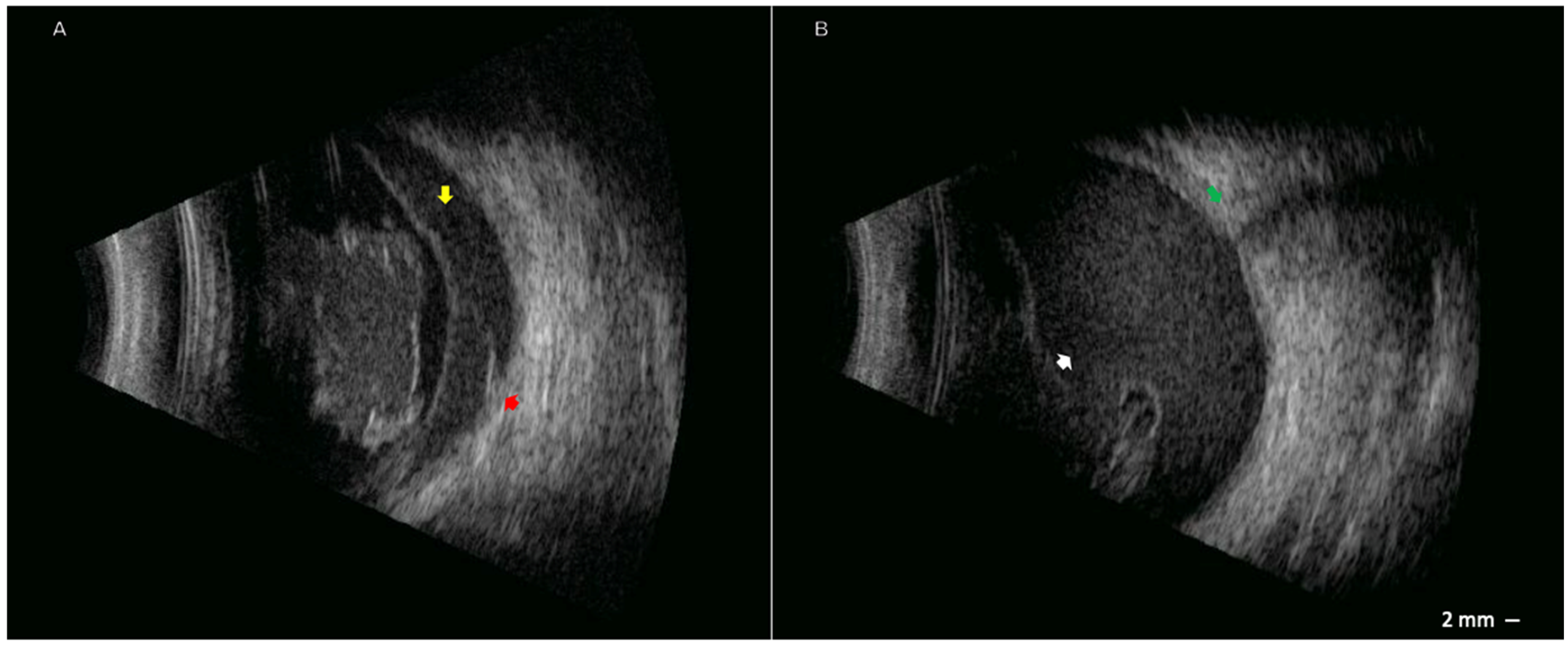 - Mejía-Salgado, G.; Cardozo-Pérez, C.; Cifuentes-González, C.; Durán-Merino, C.; de-la-Torre, A. Coinfection Suspicion Is Imperative in Immunosuppressed Patients with Suspected Infectious Uveitis and Inadequate Treatment Response: A Case Report. Ocul. Immunol. Inflamm. 2024, 32, 2548–2552. [Google Scholar] [CrossRef] [PubMed]