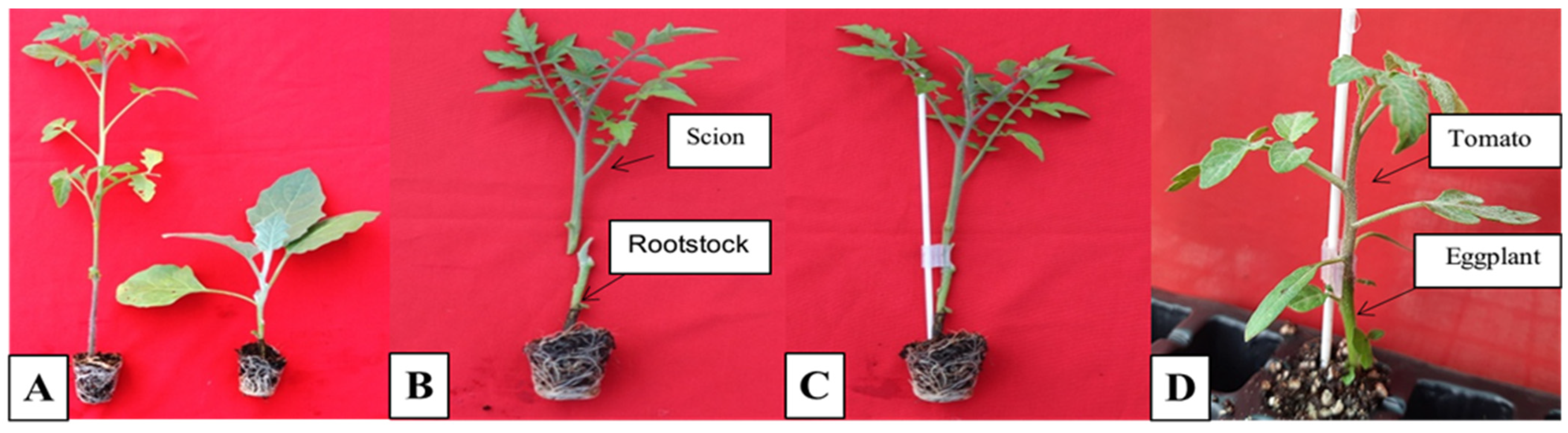 - Nyaku, S.T.; Amissah, N. Grafting: An effective strategy for nematode management in tomato genotypes. In Recent Advances in Tomato Breeding and Production; IntechOpen: London, UK, 2018. [Google Scholar] [CrossRef]