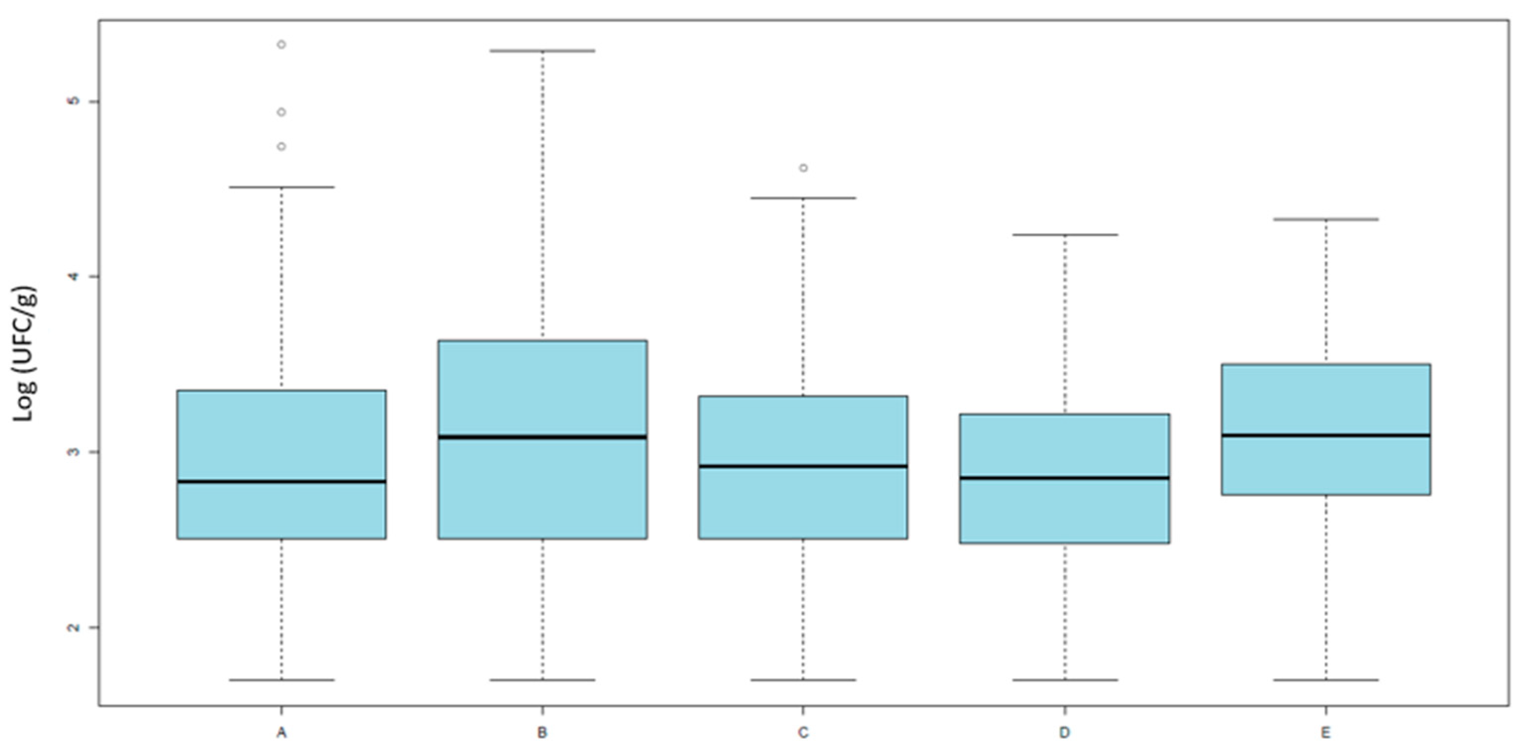 3.1. Enumeration of E. coli: Quantitative Analysis