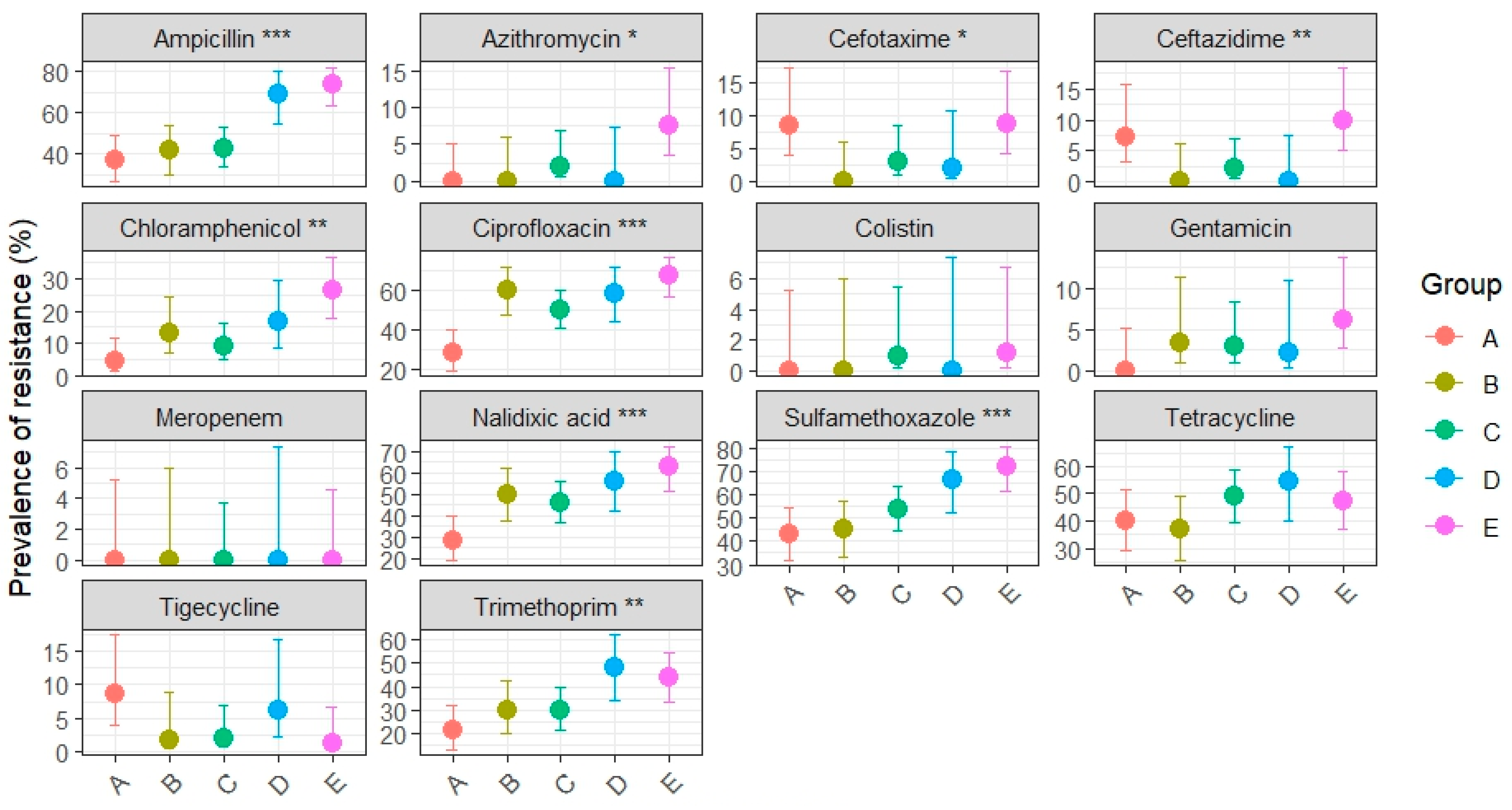 - To investigate whether slaughtering ATB-free flocks after conventional ones could increase the risk of resistance contamination and, based on a priori hypothesis, to determine whether Group C (ATB-free slaughtered after conventional flocks) would show a higher prevalence of resistant E. coli compared with Group D (ATB-free slaughtered before conventional flocks).