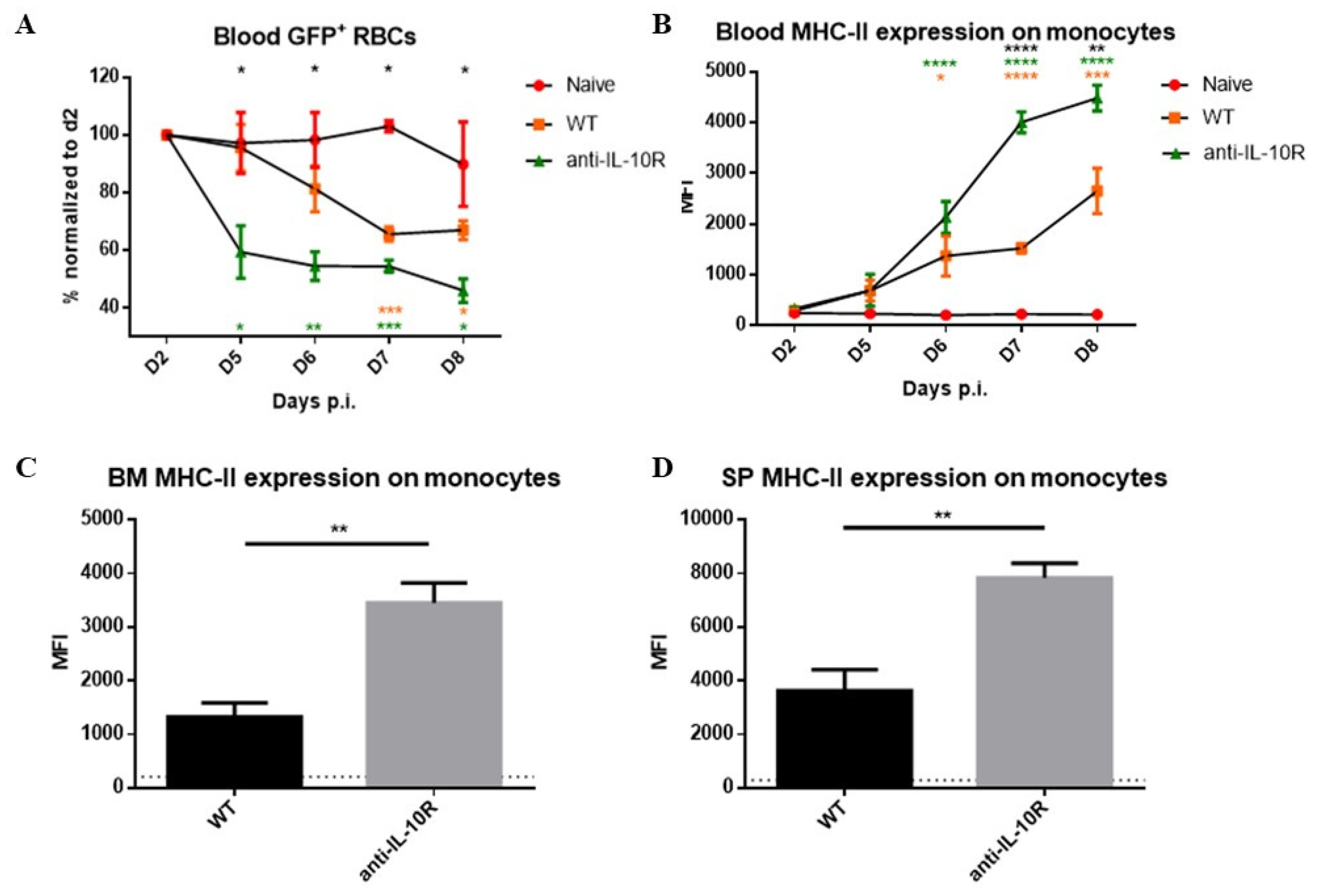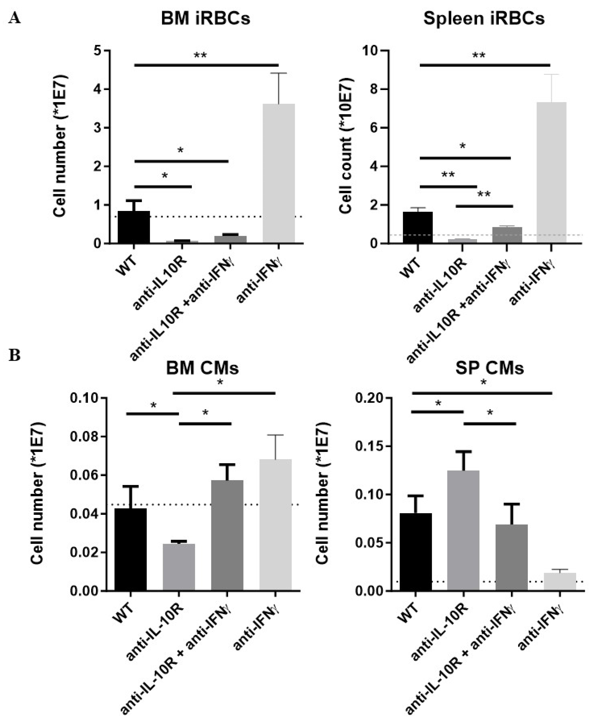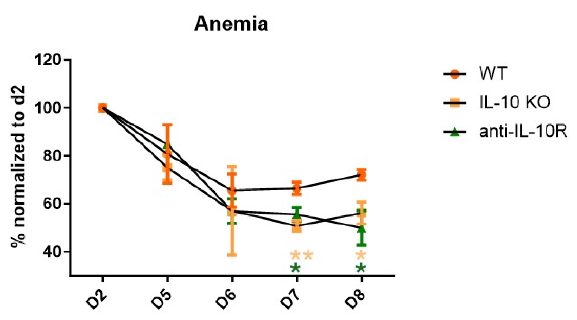 3.1. Blockade of IL-10 Signaling Enhances Acute Anemia Development and Negatively Affects Mature and Immature RBC Formation in the Bone Marrow and Spleen During AT