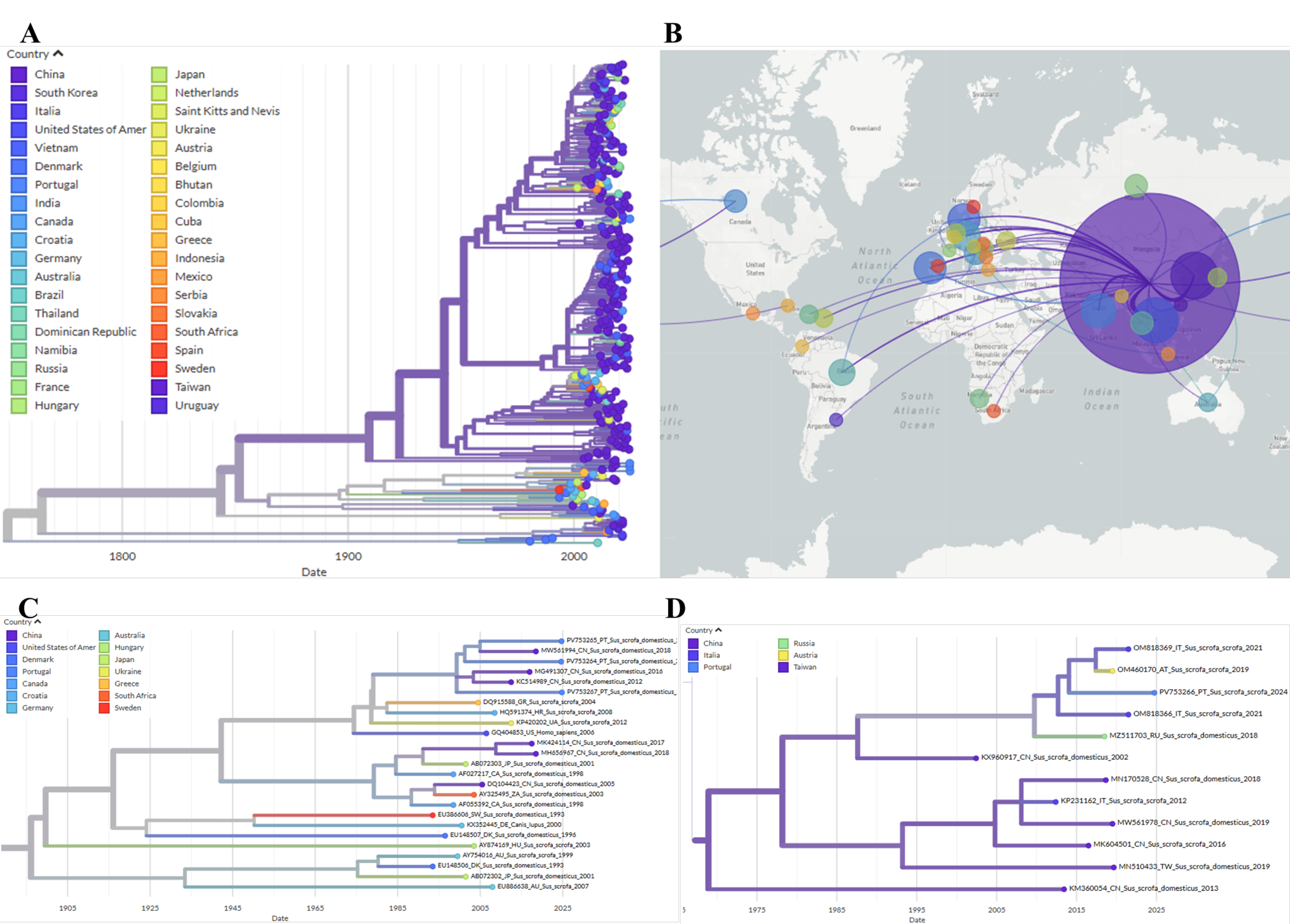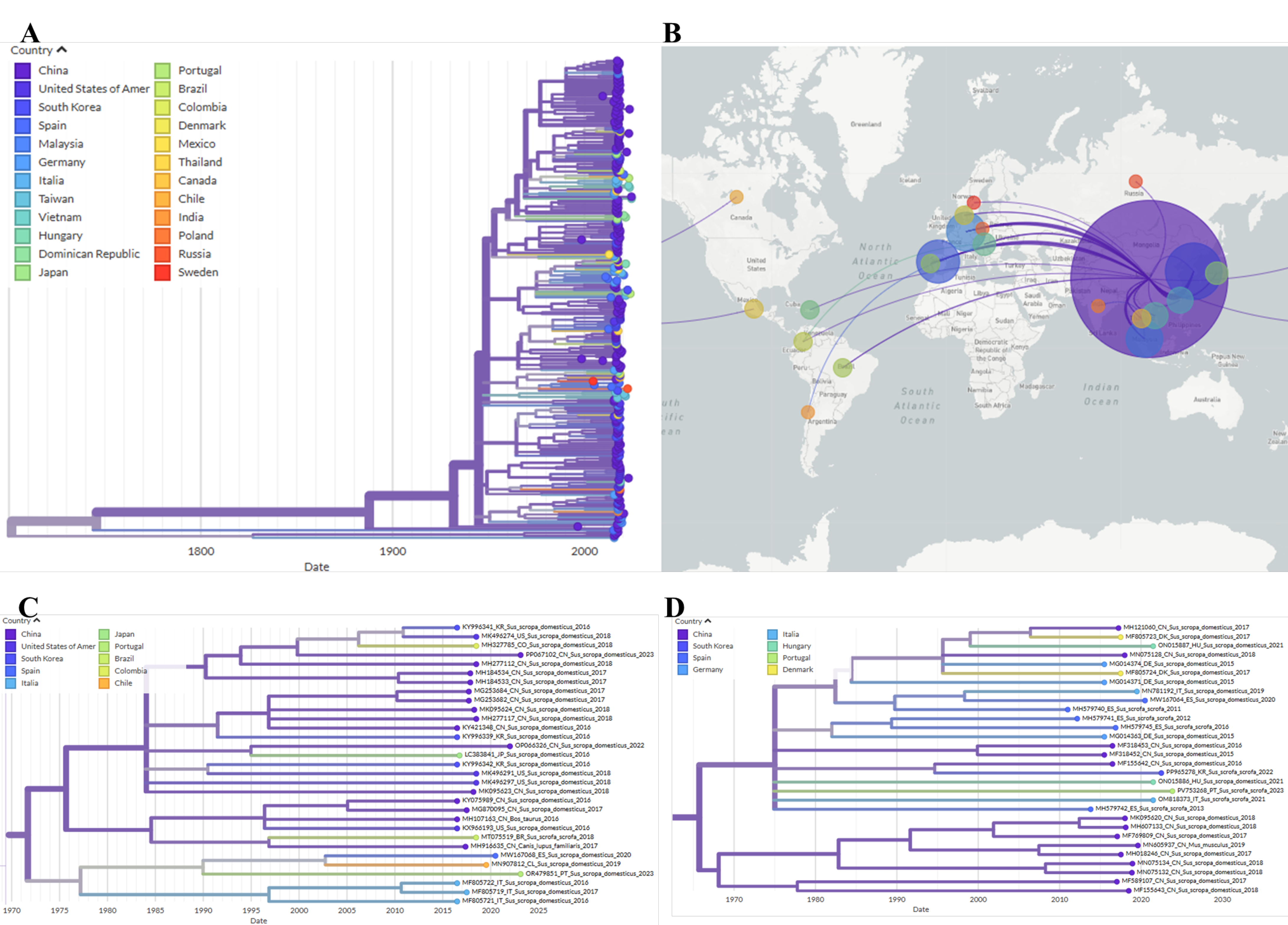 2.5. Phylogenetic and Phylogeographic Analysis