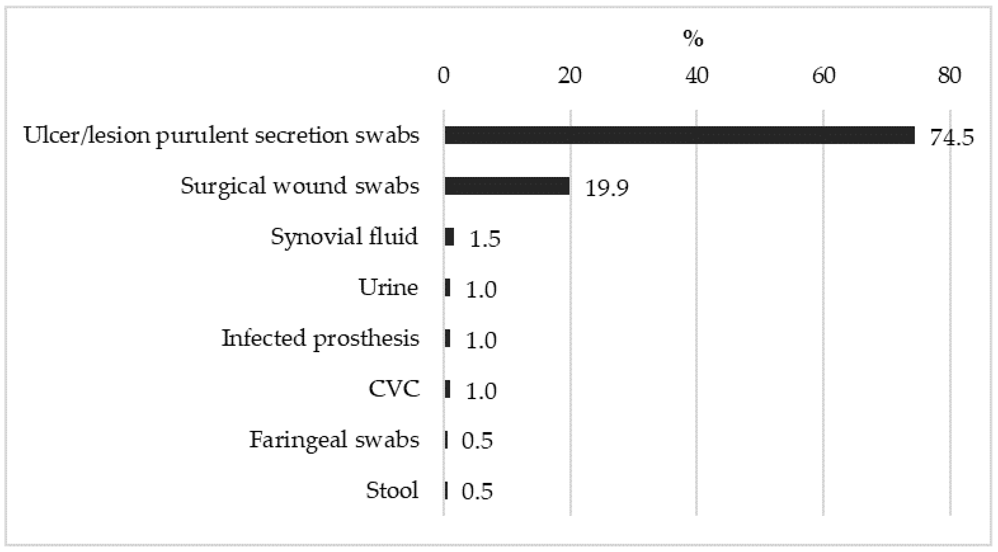 - Forget, V.; Fauconnier, J.; Boisset, S.; Pavese, P.; Vermorel, C.; Bosson, J.L.; Saragaglia, D.; Tonetti, J.; Mallaret, M.R.; Landelle, C. Risk factors for Staphylococcus aureus surgical site infections after orthopaedic and trauma surgery in a French university hospital. Int. J. Hyg. Environ. Health 2020, 229, 113585. [Google Scholar] [CrossRef] [PubMed]