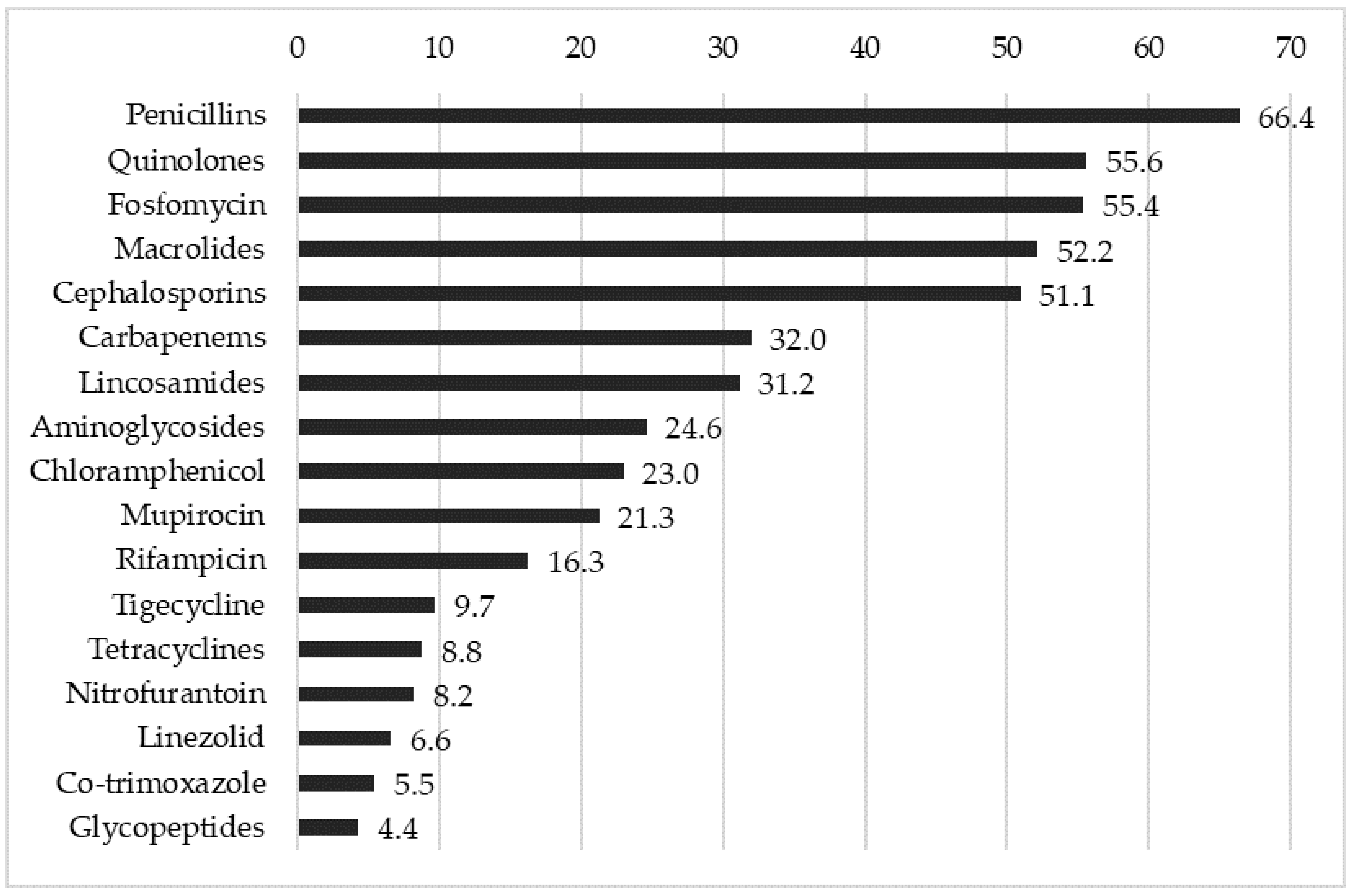 | PENICILLINS (66.4%) | Mean Percentage of Resistance |