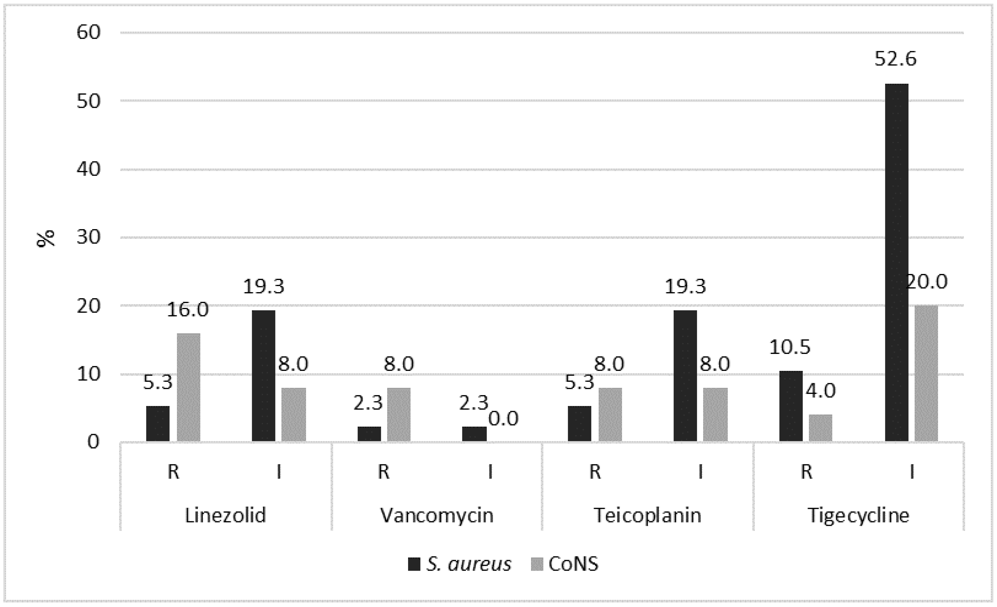 | Aminoglycosides | 30.8 | 23.1 | 33.3 | ns |