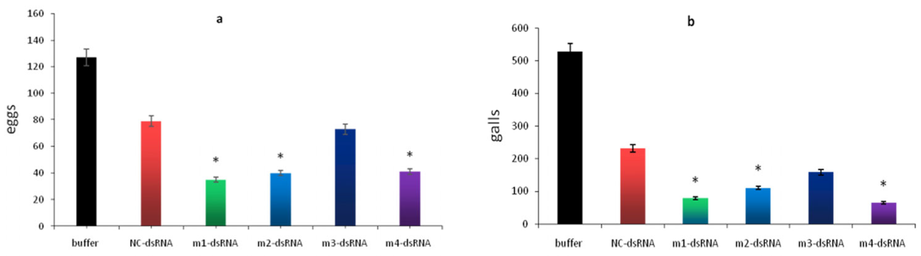 2.2. RNA Interference of Genes Associated with Chemotaxis and Egg Hatching in Meloidogyne incognita