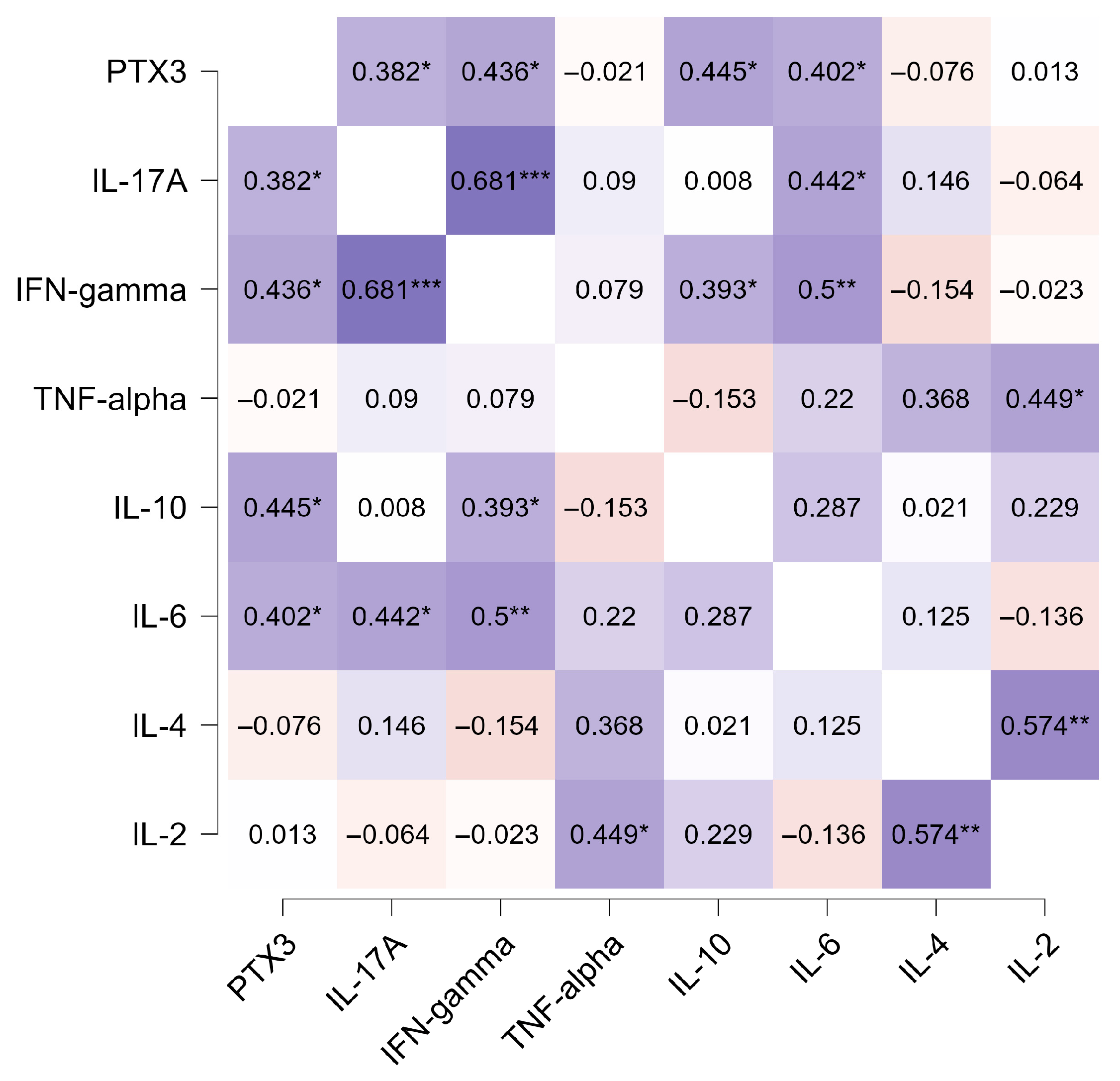 3.6. Correlation Between PTX3 and Inflammatory Cytokines