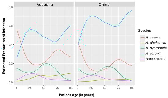 Singh, A.; Liu, F.; Yuwono, C.; Wehrhahn, M.C.; Slavich, E.; Young, A.M.; Chong, S.K.T.; Tay, A.C.Y.; Riordan, S.M.; Zhang, L. Age-Dependent Variations in the Distribution of Aeromonas Species in Human Enteric Infections. Pathogens 2025, 14, 120. https://doi.org/10.3390/pathogens14020120