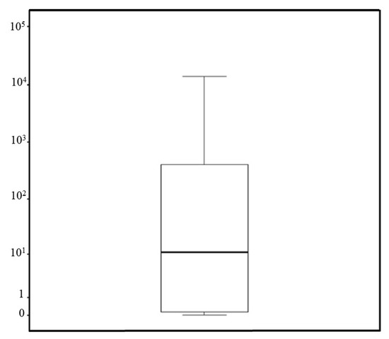 Boxplots of T. cruzi parasite load in T. sordida captured in the rural region of Espinosa, MG, Brazil.
