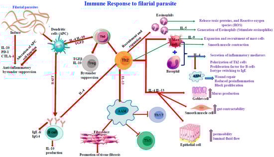 - Babu, S.; Nutman, T.B. Immunopathogenesis of lymphatic filarial disease. Semin. Immunopathol. 2012, 34, 847–861. [Google Scholar] [CrossRef]