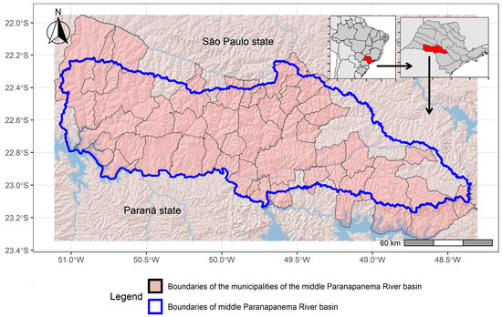 The present study was conducted in the Middle Paranapanema River region (Figure 1), with 25 (out of 645 statewide) municipalities distributed over 6237 km2, with an overall population of 465,170 inhabitants [9].