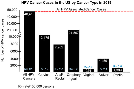 - Senkomago, V.; Henley, S.J.; Thomas, C.C.; Mix, J.M.; Markowitz, L.E.; Saraiya, M. Human Papillomavirus-Attributable Cancers—United States, 2012–2016. MMWR Morb. Mortal. Wkly. Rep. 2019, 68, 724–728. [Google Scholar]