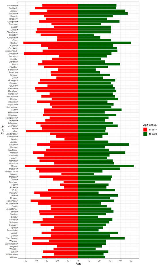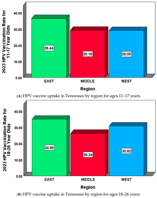 - Tennessee HPV Teen Coverage Rate Dashboard: Immunization Coverages rates for 18–26 Year Olds in Tennessee, as Reported by TennIIS for HPV in 2023. Available online: https://data.tn.gov/t/Public/views/Adult_Dash_Q2_for_publication/Adult_Dash?%3Aembed=y&%3Atabs=no&%3Atoolbar=no (accessed on 12 January 2025).