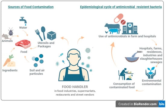 Chicago/Turabian StyleViana, Gustavo Guimarães Fernandes, Marita Vedovelli Cardozo, Juliano Gonçalves Pereira, and Gabriel Augusto Marques Rossi. 2025. "Antimicrobial Resistant Staphylococcus spp., Escherichia coli, and Salmonella spp. in Food Handlers: A Global Review of Persistence, Transmission, and Mitigation Challenges" Pathogens 14, no. 5: 496. https://doi.org/10.3390/pathogens14050496