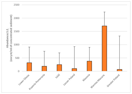 Mean abundance of Cryptosporidium spp. between voivodeships.