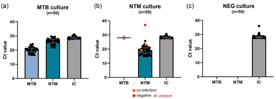 | Biological Matrices | NTM, n = 50 | MTB, n = 50 | NEG, n = 50 |
