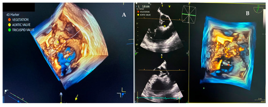 - Delgado, V.; Ajmone-Marsan, N.; de Waha, S.; Bonaros, N.; Brida, M.; Burri, H.; Caselli, S.; Doenst, T.; Ederhy, S.; Erba, P.A.; et al. 2023 ESC Guidelines for the management of endocarditis. Eur. Heart J. 2023, 44, 3948–4042. [Google Scholar] [CrossRef]
