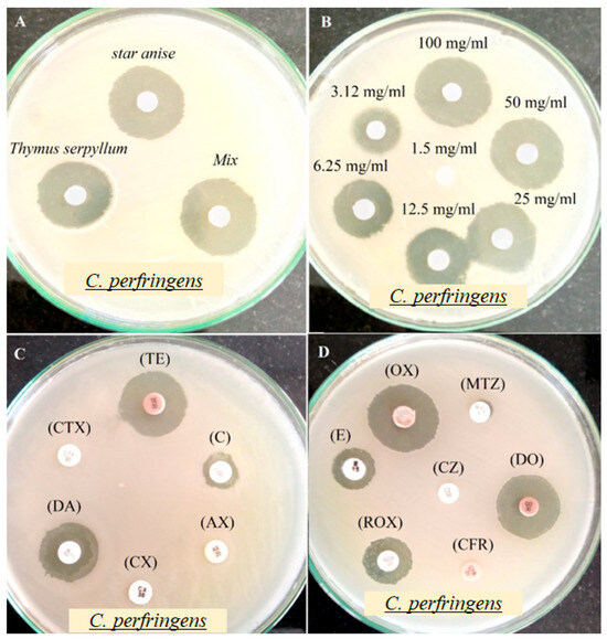 Hamad GM, Henry SGM, El-Rokh GEA, Ramadan NHA, Raoof HSA, Sulaiman AM, El-Mesallamy AM, Elshaer SE, Gaber SM, Rabah IM, et al. Detection and Inhibition of Clostridium perfringens by Cocktail of Star Anise and Thymus Extracts in Chicken Meat Products. Pathogens. 2025; 14(6):552. https://doi.org/10.3390/pathogens14060552